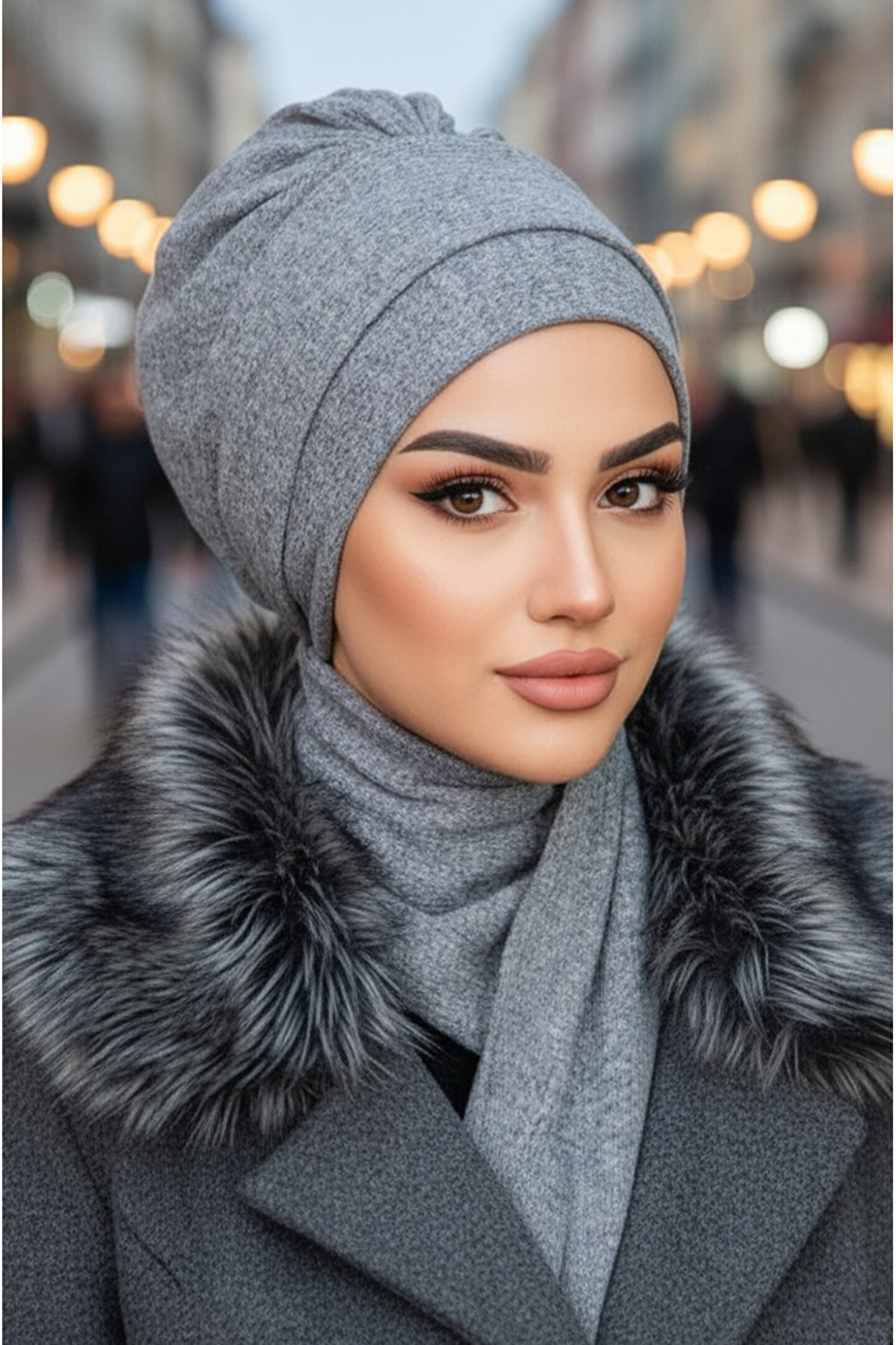 Aişe tesettür Gri Hazır Atkılı Tesettür Bone