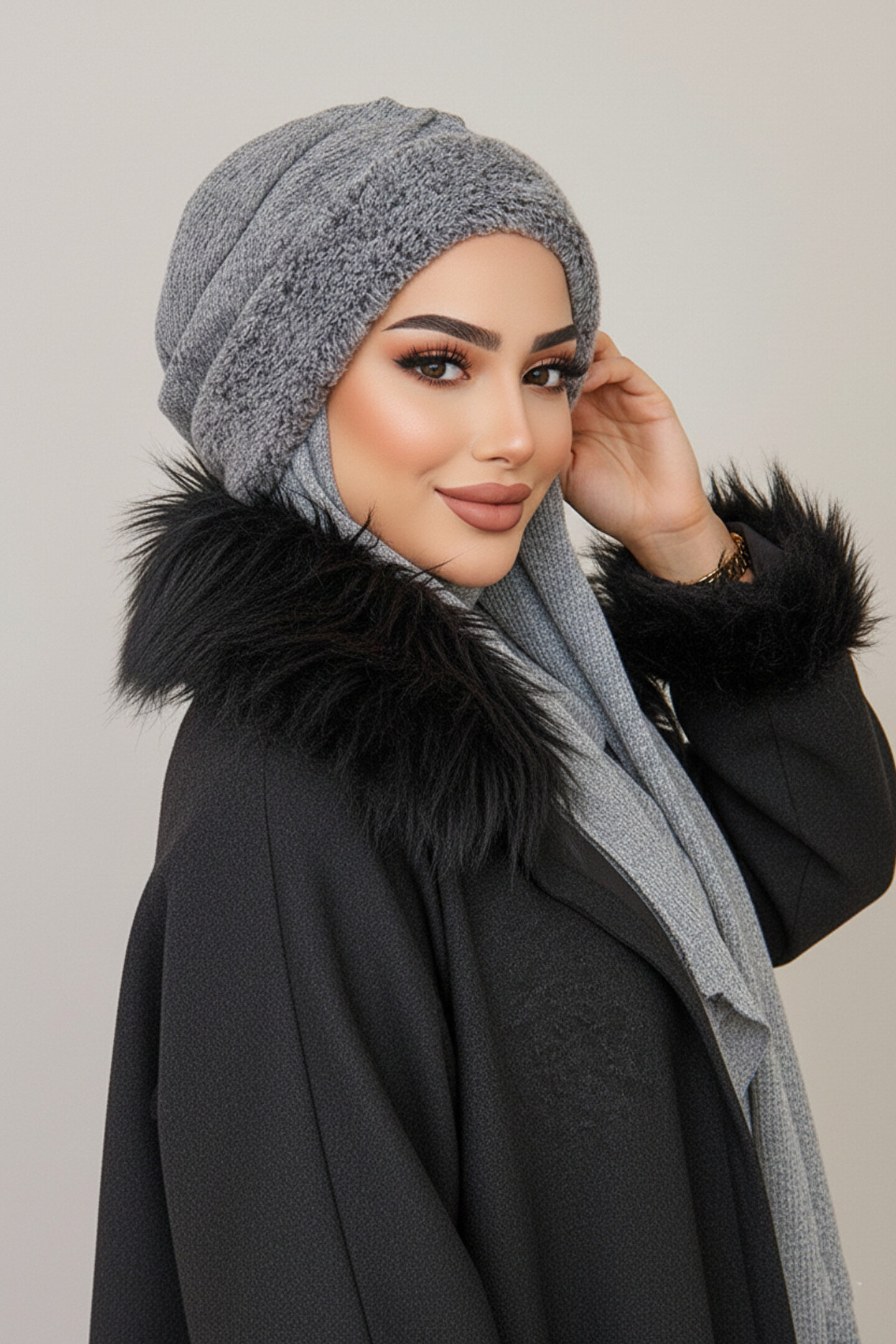 Kışın Işıltısı: Gri Kürklü Kelebek Bone Şal Modeli