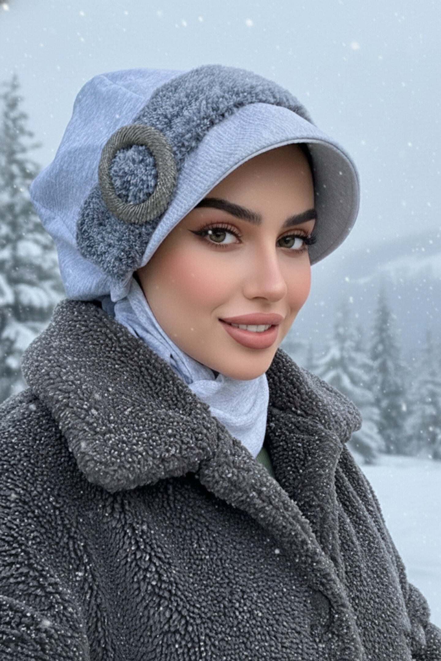 Aişe tesettür Gri Tokalı Tesettür Şapka