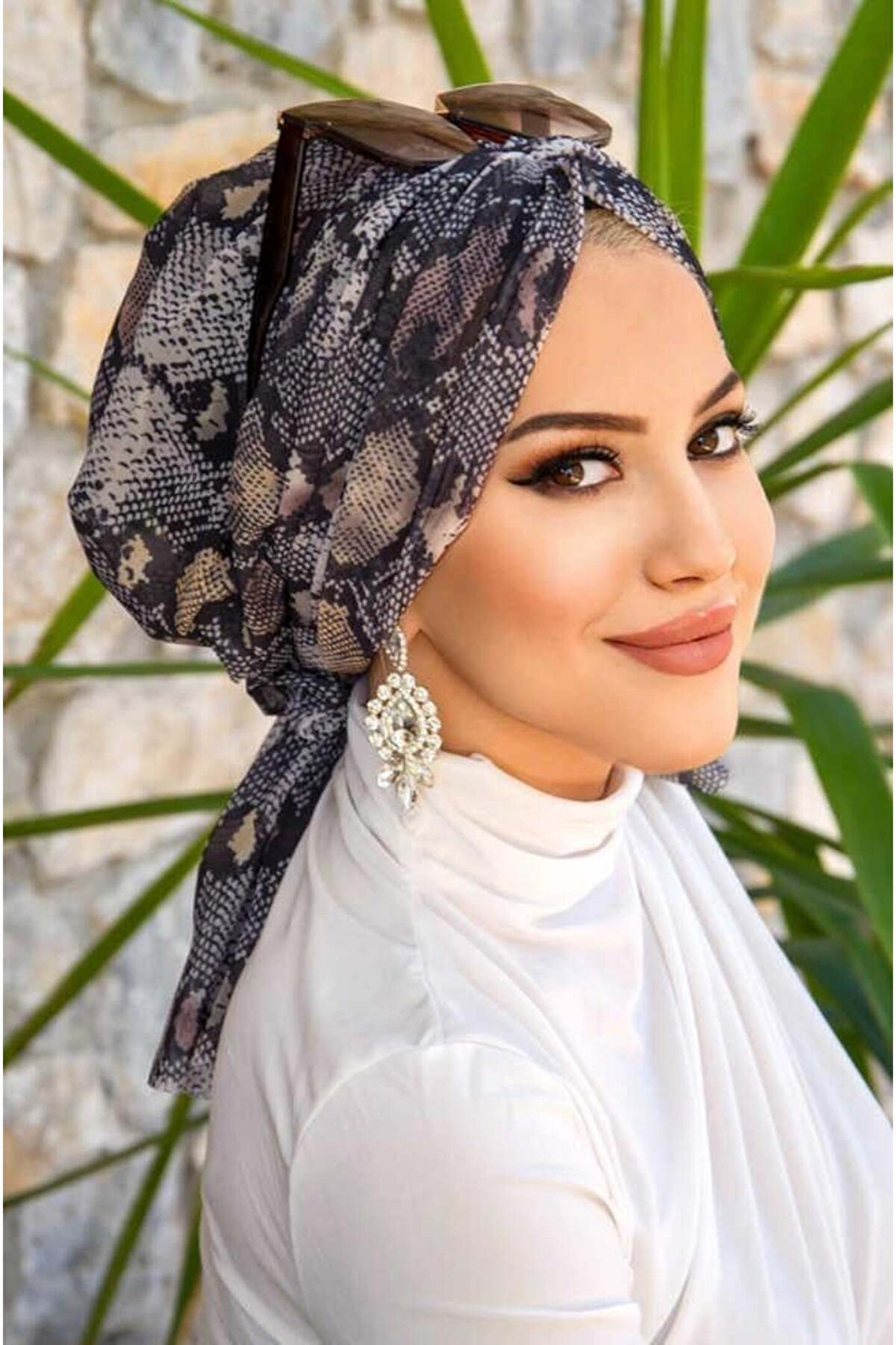 Aişe tesettür Gri Yılan Derisi Desen Tül Tokalı Bone