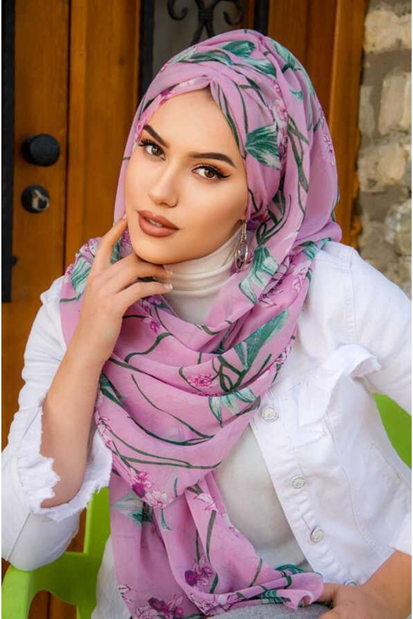 Aişe tesettür Gülkurusu Çiçek Desenli Hazır Şifon Şal