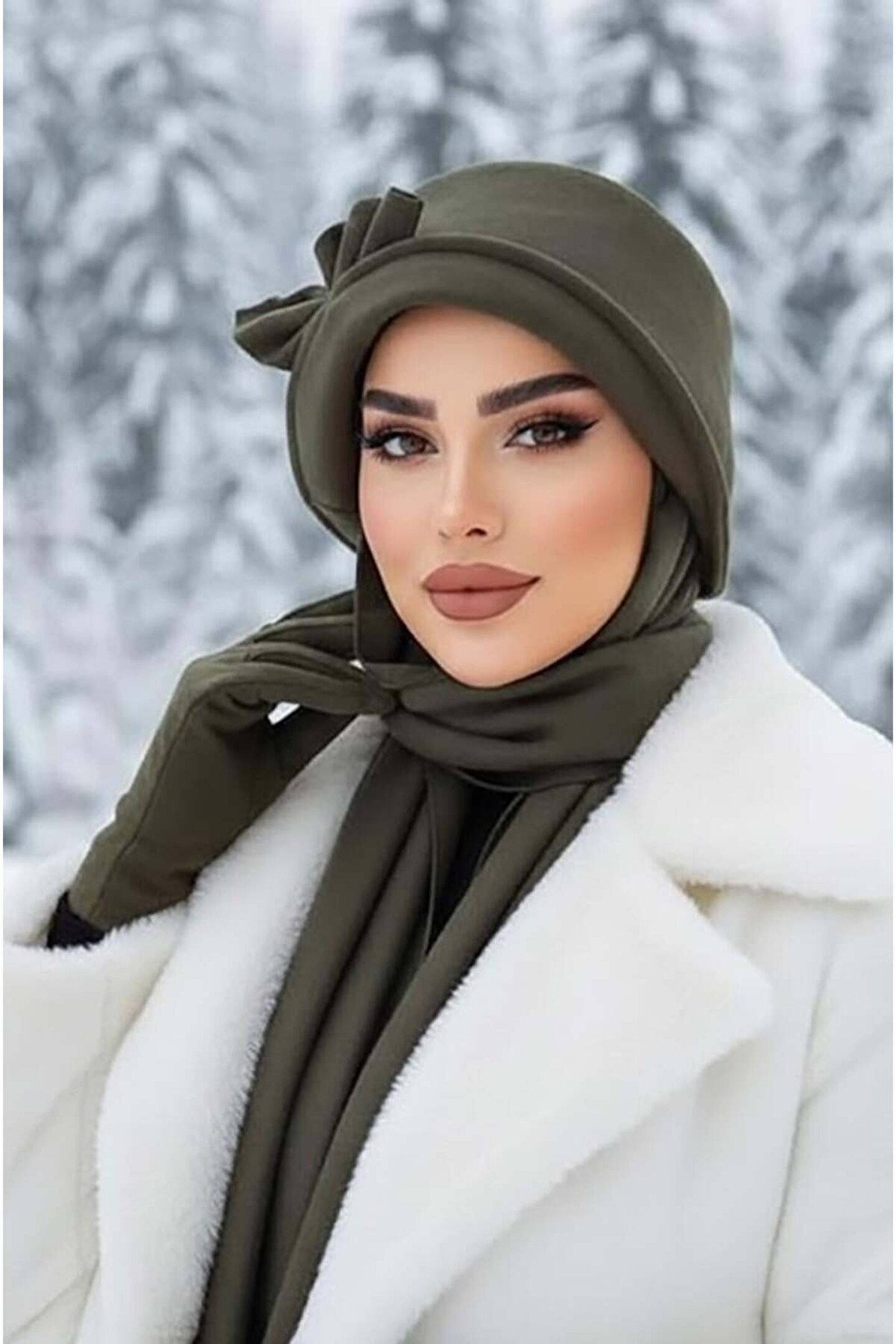 Aişe tesettür Haki Aksesuarlı Atkılı Vintage Şapka