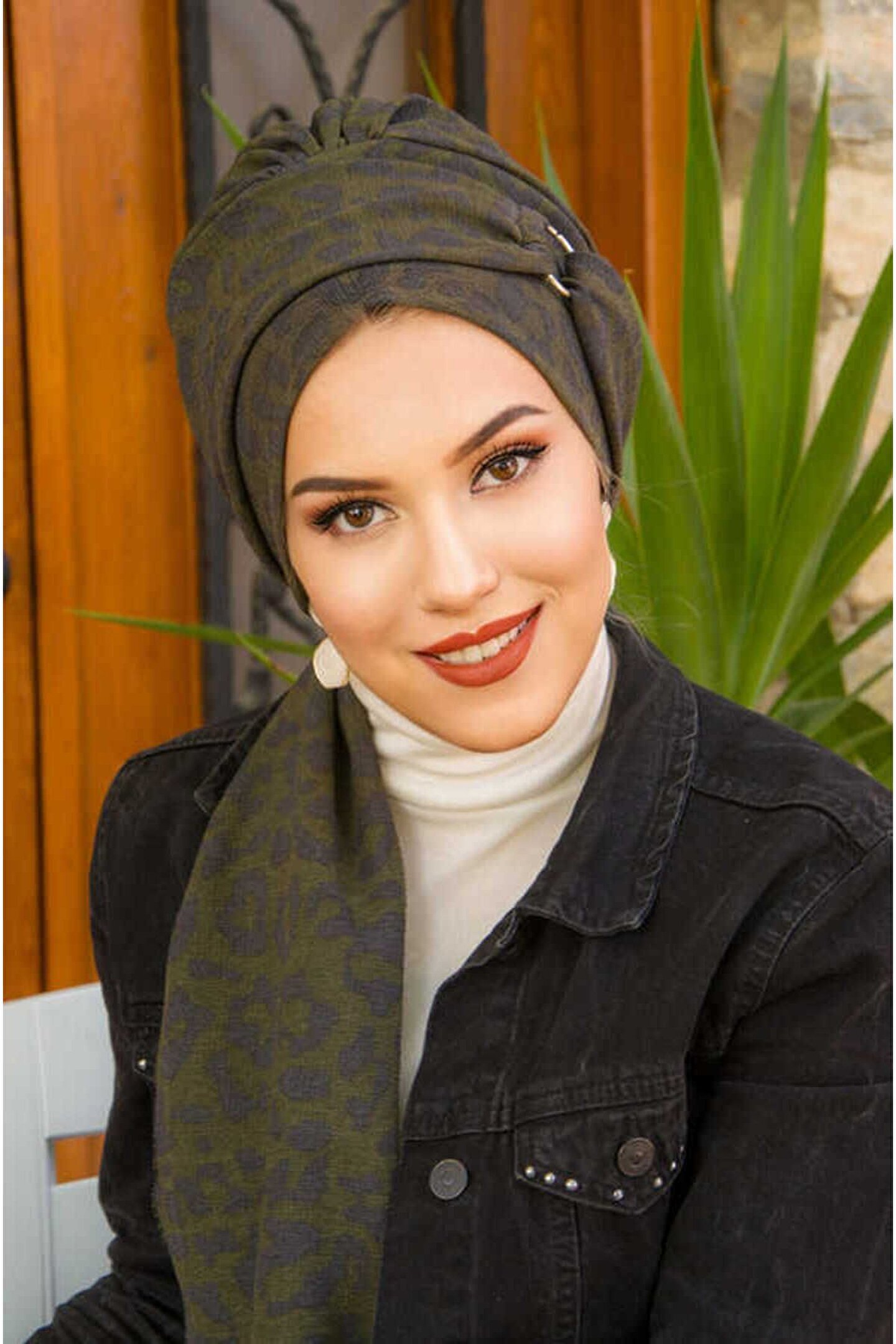 Haki Desenli Krınkıl Toka Detaylı Atkılı Bone