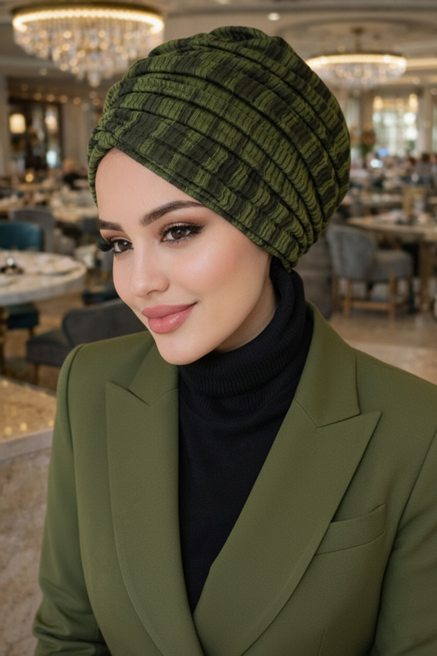 Aişe tesettür Haki Siyah Desen Büzgülü Salaş Bone
