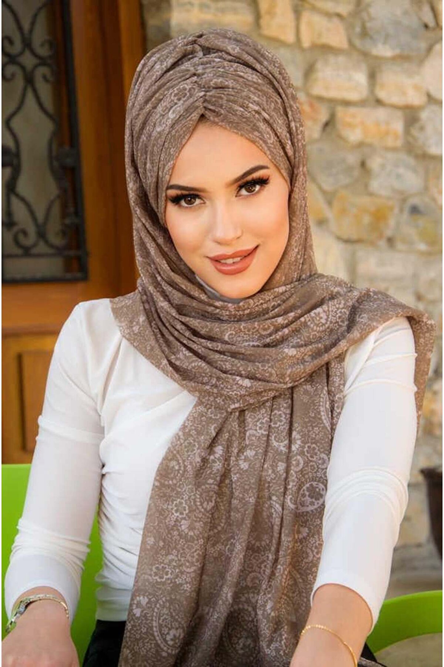 Aişe tesettür Haki Vizon Retro Desen Hazır Şal