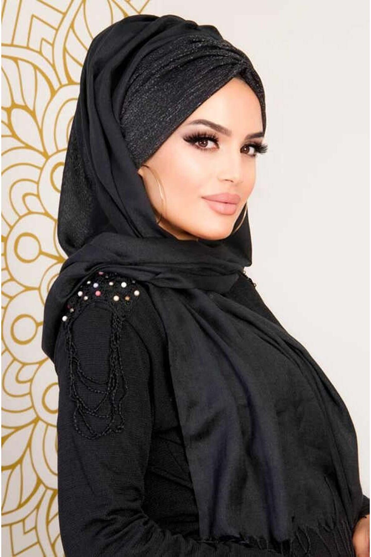 Sade ve şık tasarımıyla her kıyafetle uyum sağlayan düz desenli siyah şal; Yüksek kaliteli 100% polyester materyal bileşeni sayesinde uzun ömürlü kullanım sunar; Kolay bakım imkanı sağlayan Type 1 yıkama talimatına uygun şekilde temizlenebilir; Polyester kumaşı ile hafif ve konforlu bir kullanım deneyimi yaşatır;