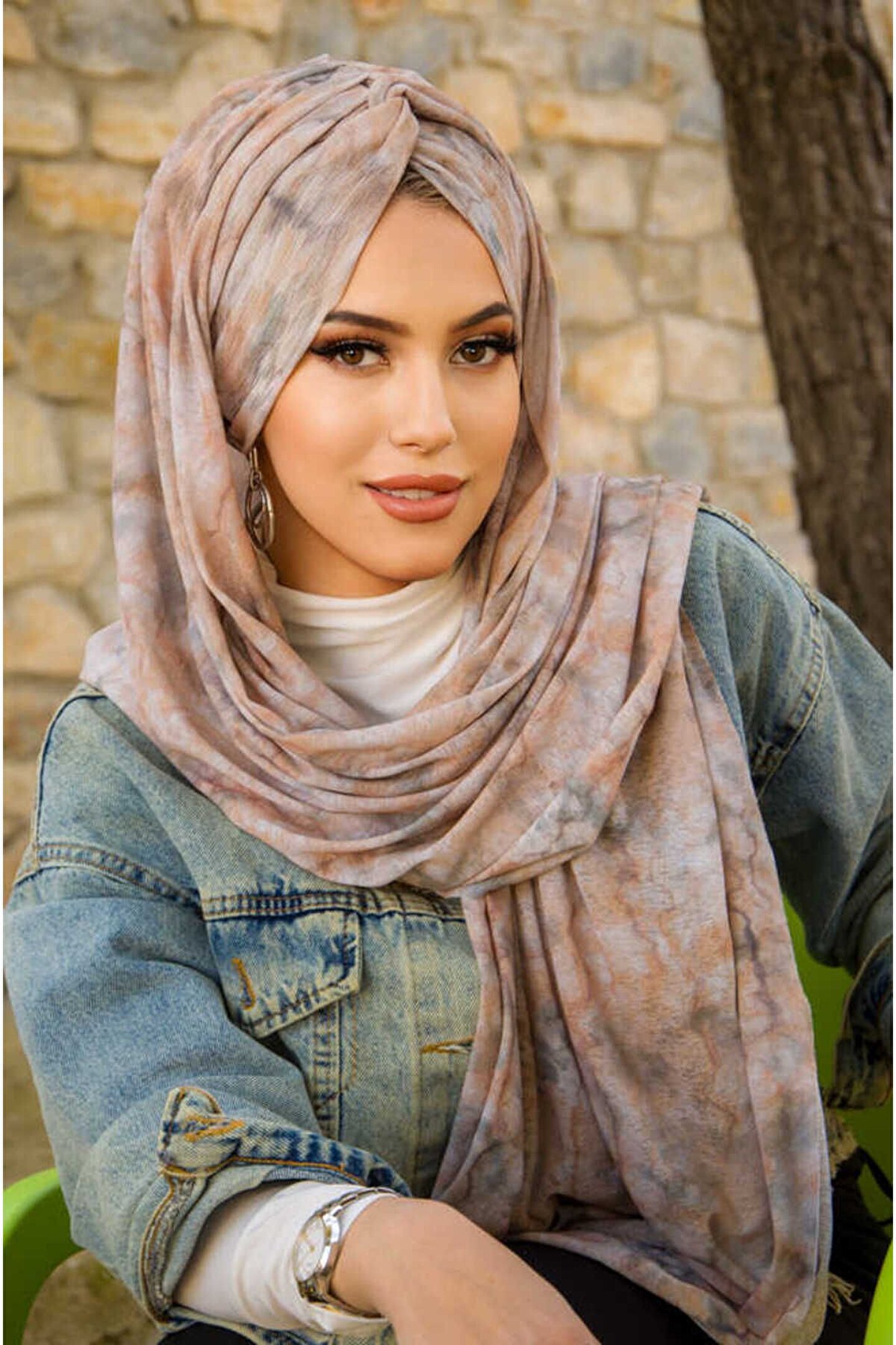 Karamel Batik Burgu Hazır Şal