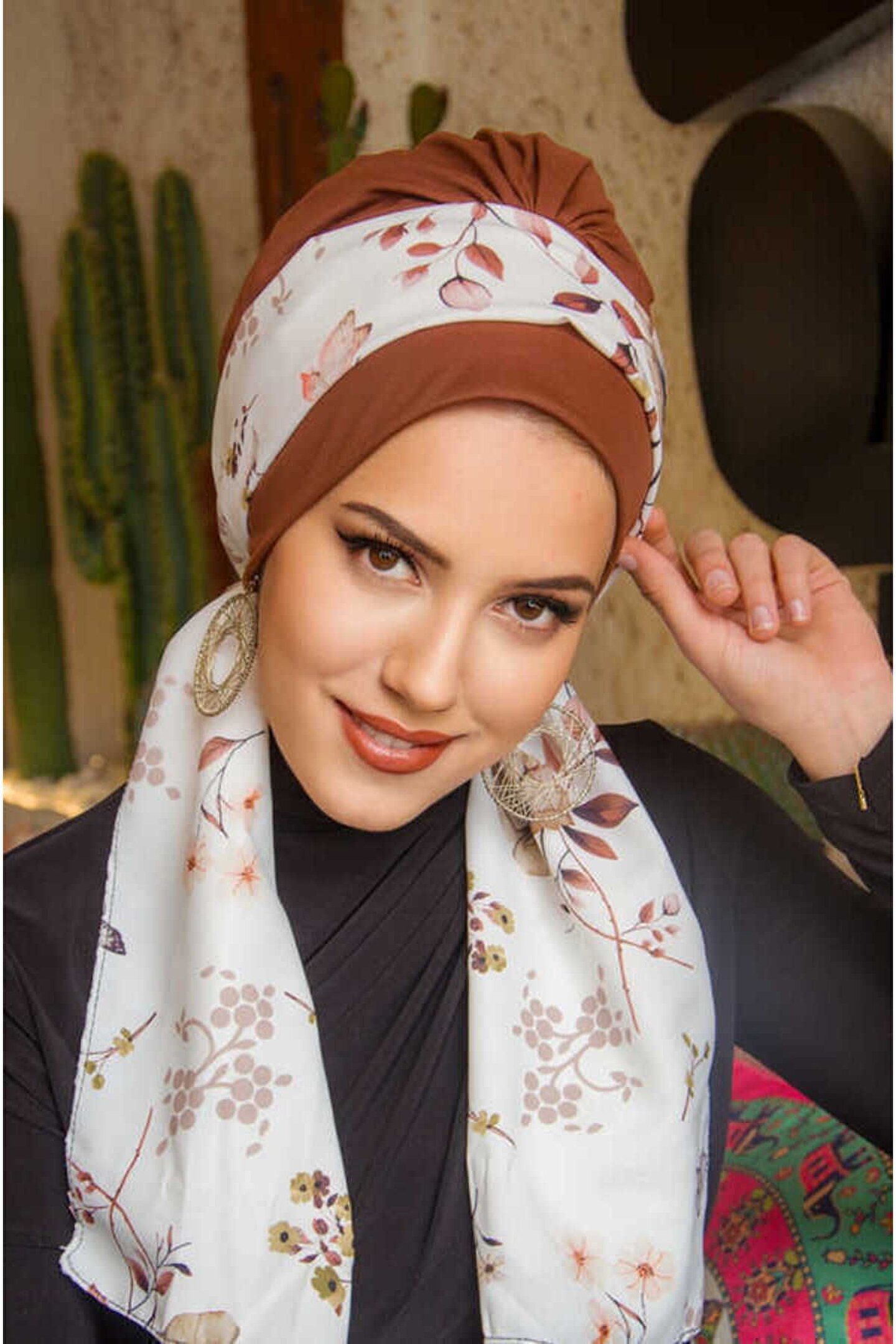 Beyaz Kırmızı Çiçekli Eşarp Bone