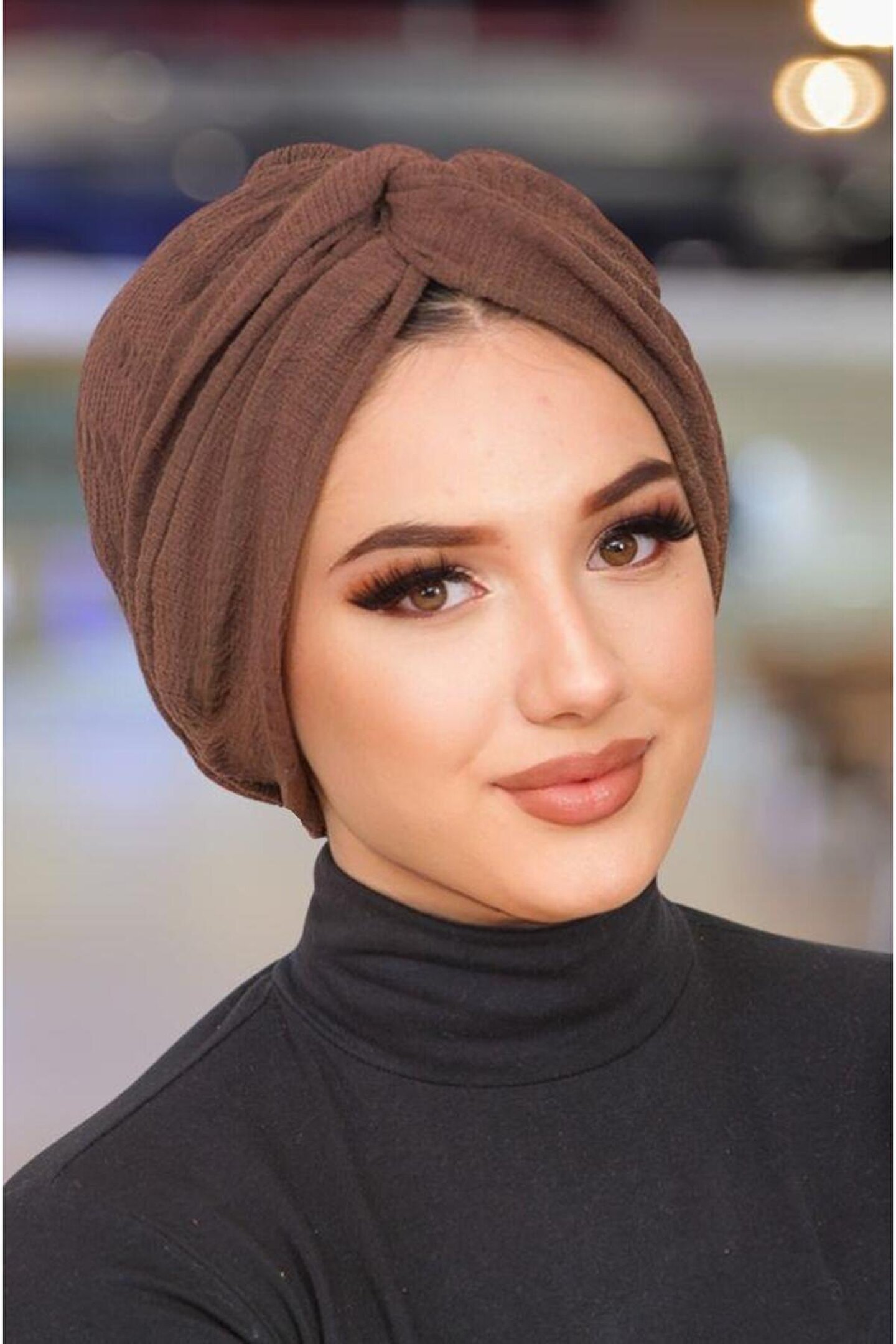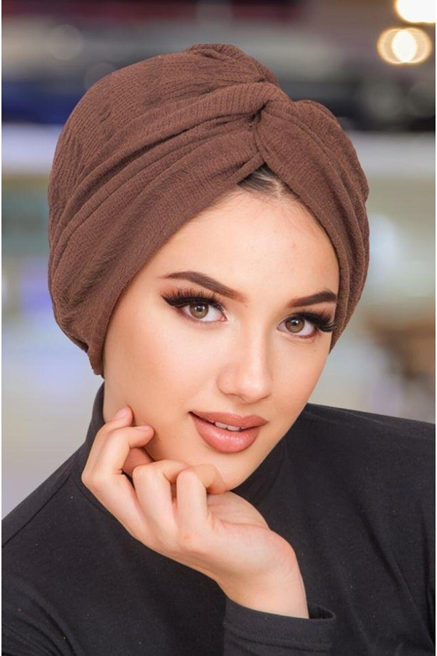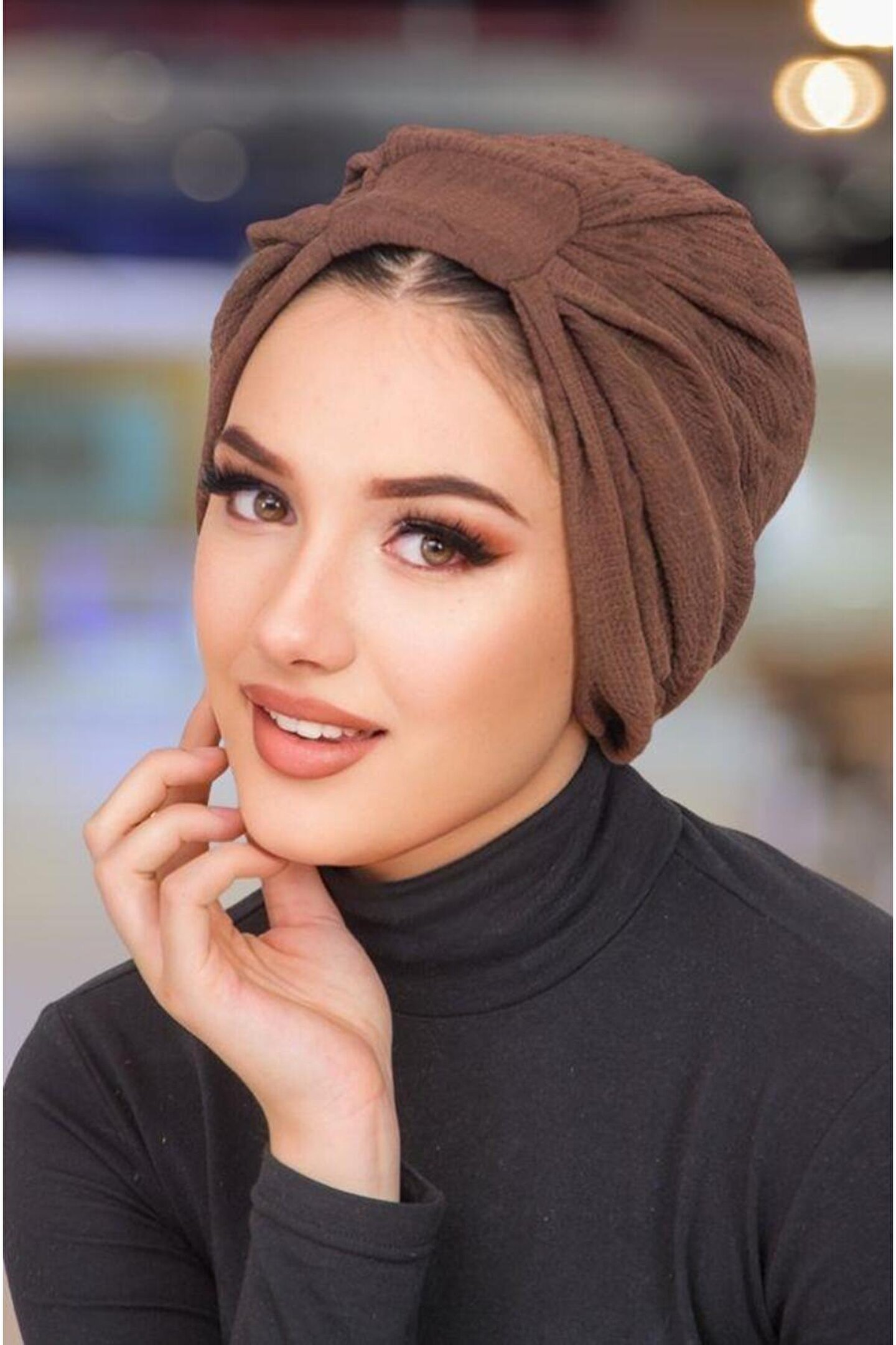 Aişe tesettür Karamel Kahve Burgu Hazır Bone