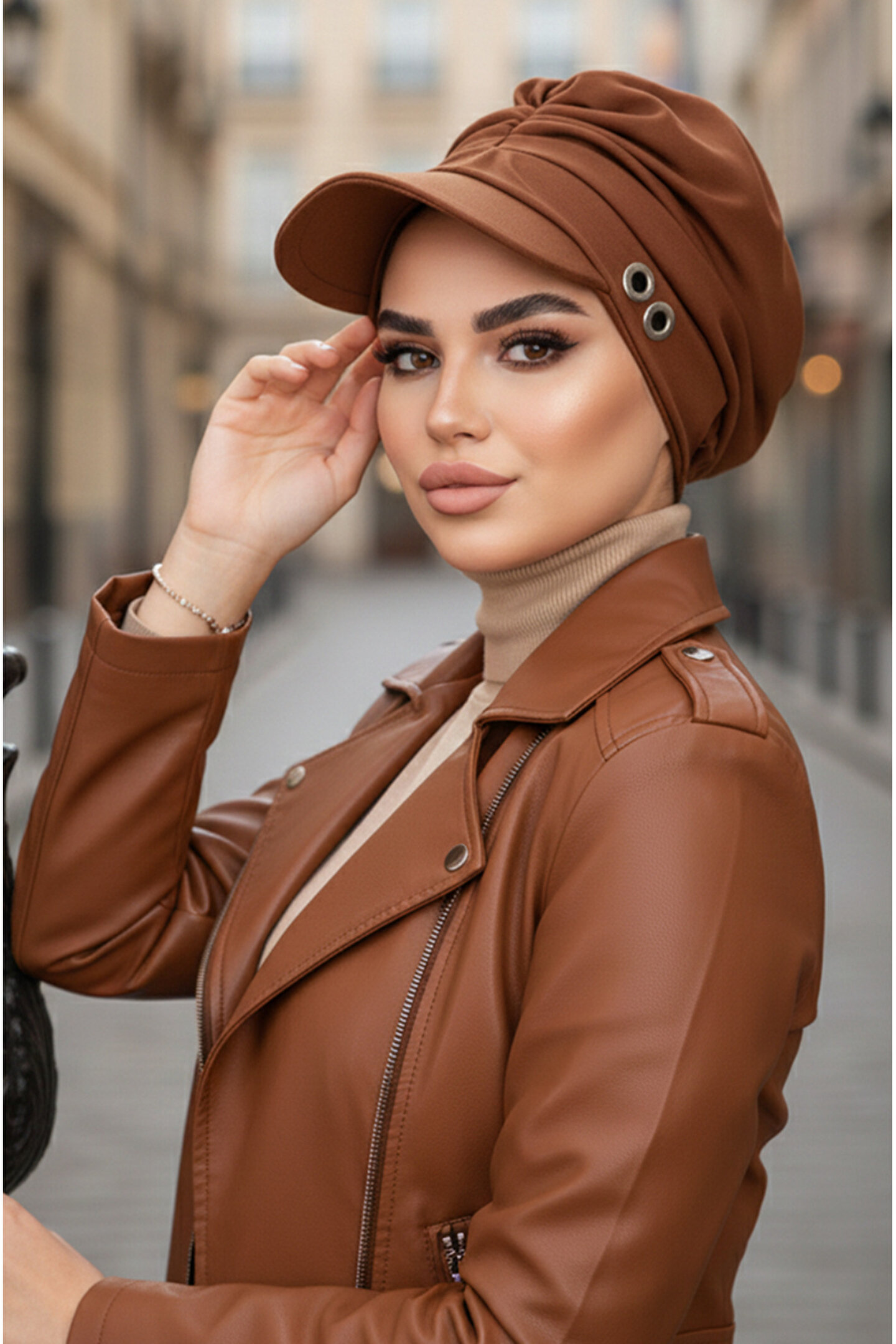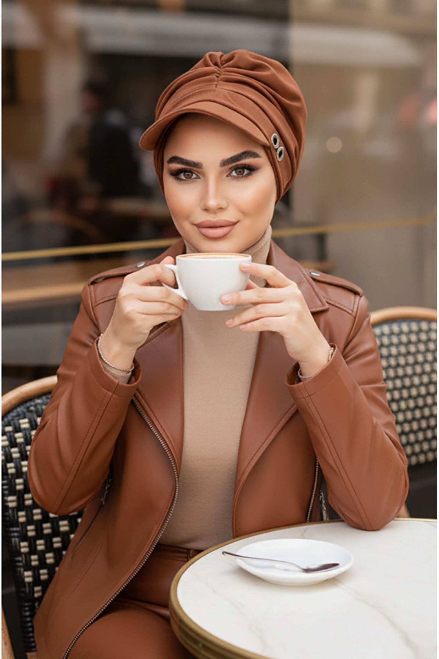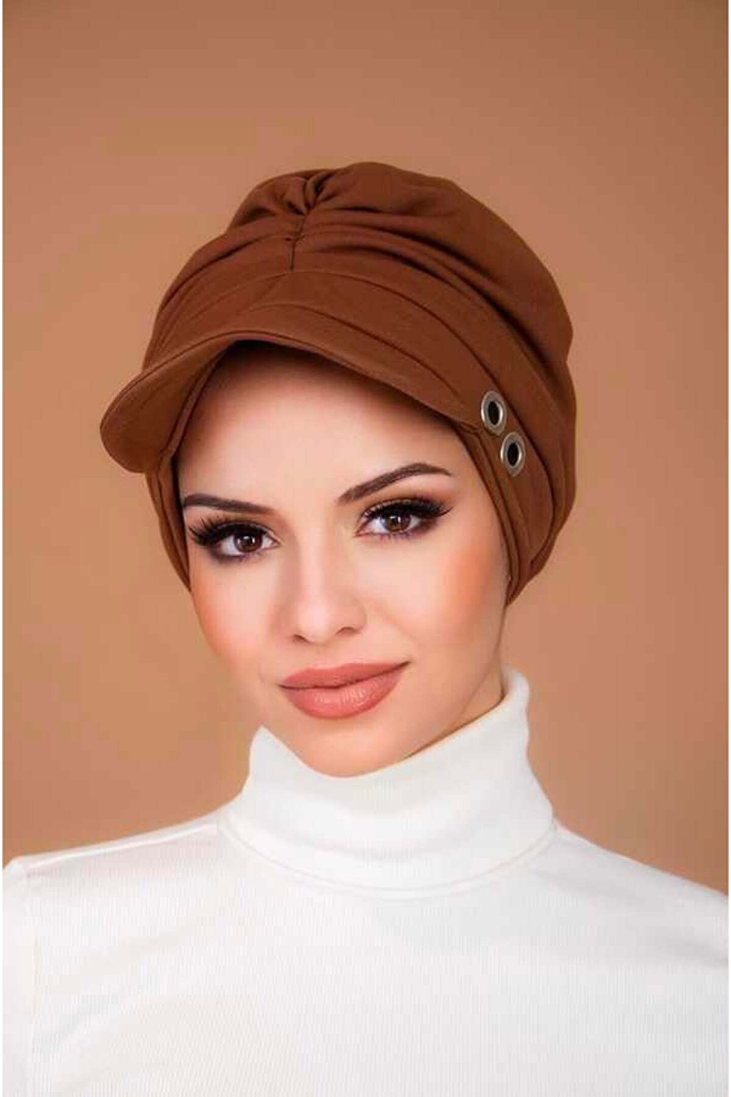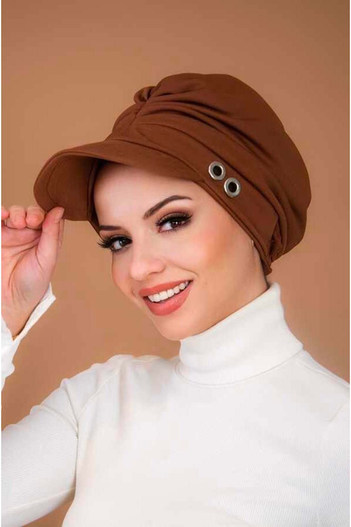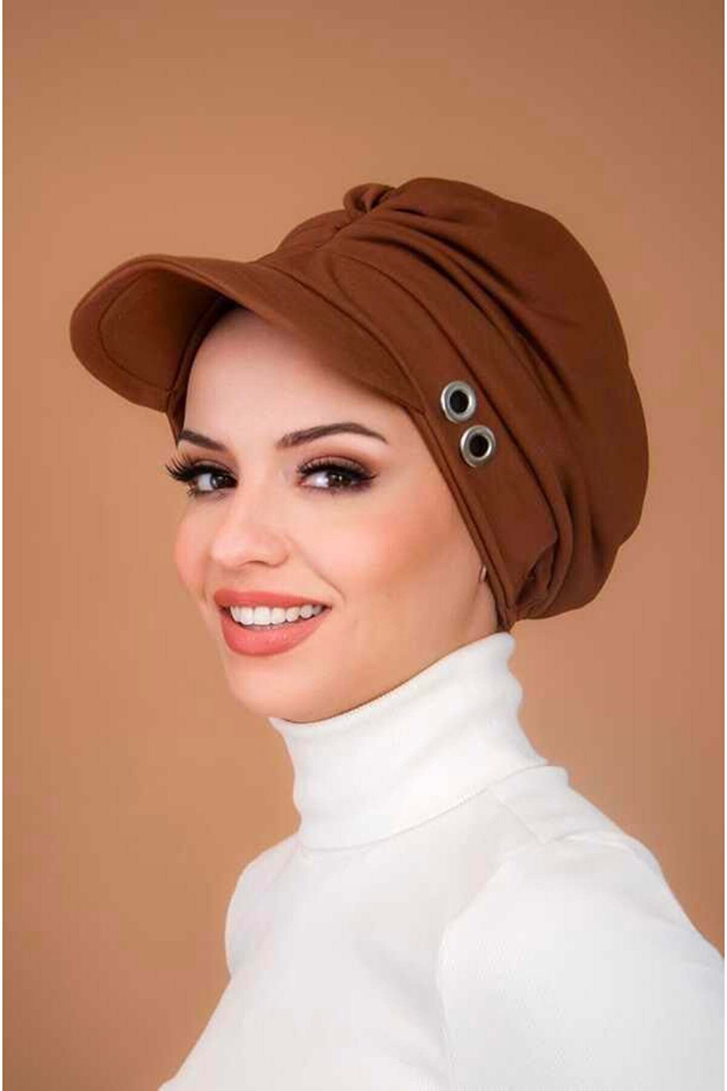 Aişe tesettür Karamel Metal Detaylı Tesettür Şapka Bone