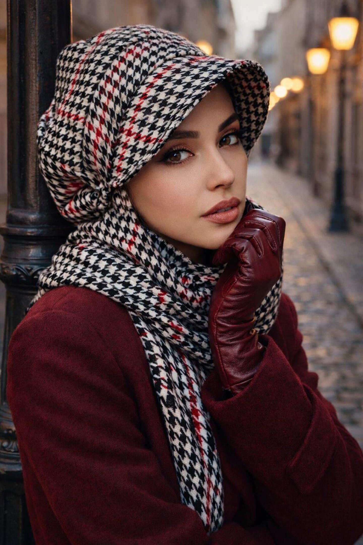 Aişe tesettür Kazayağı Kırmızı Siyah Atkılı Tesettür Şapka