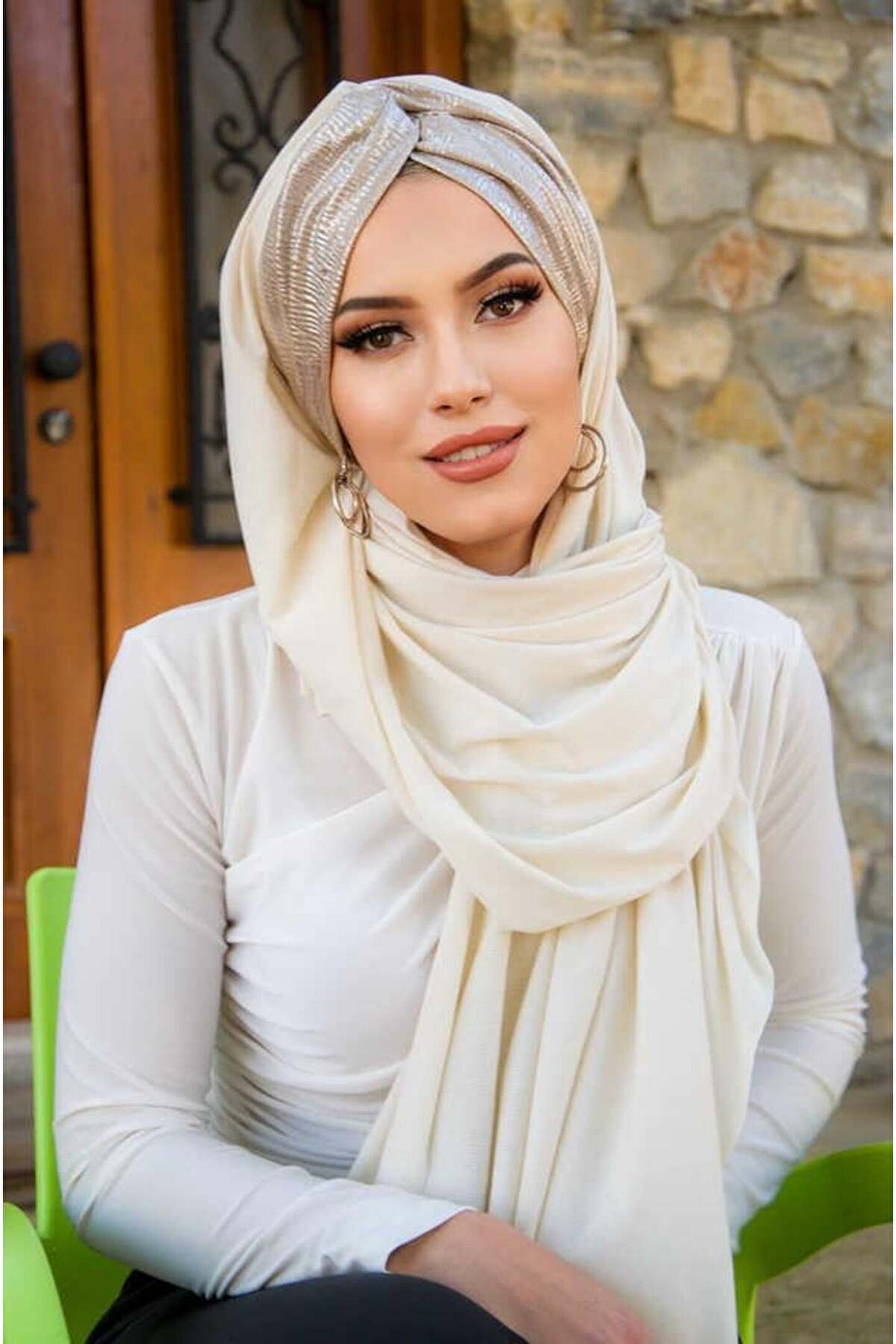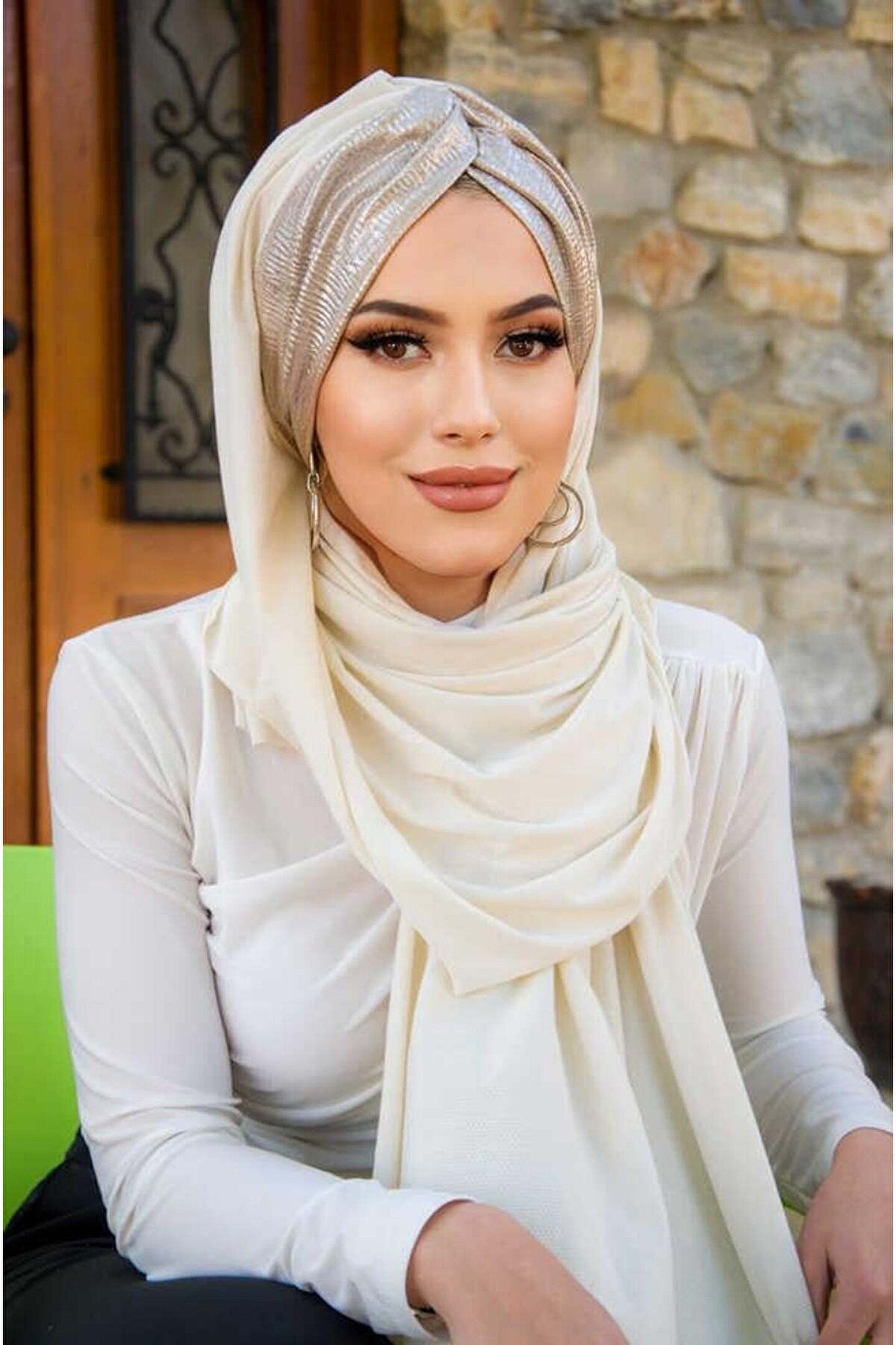 Aişe tesettür Kemik Dore Varaklı Burgu Hazır Şal