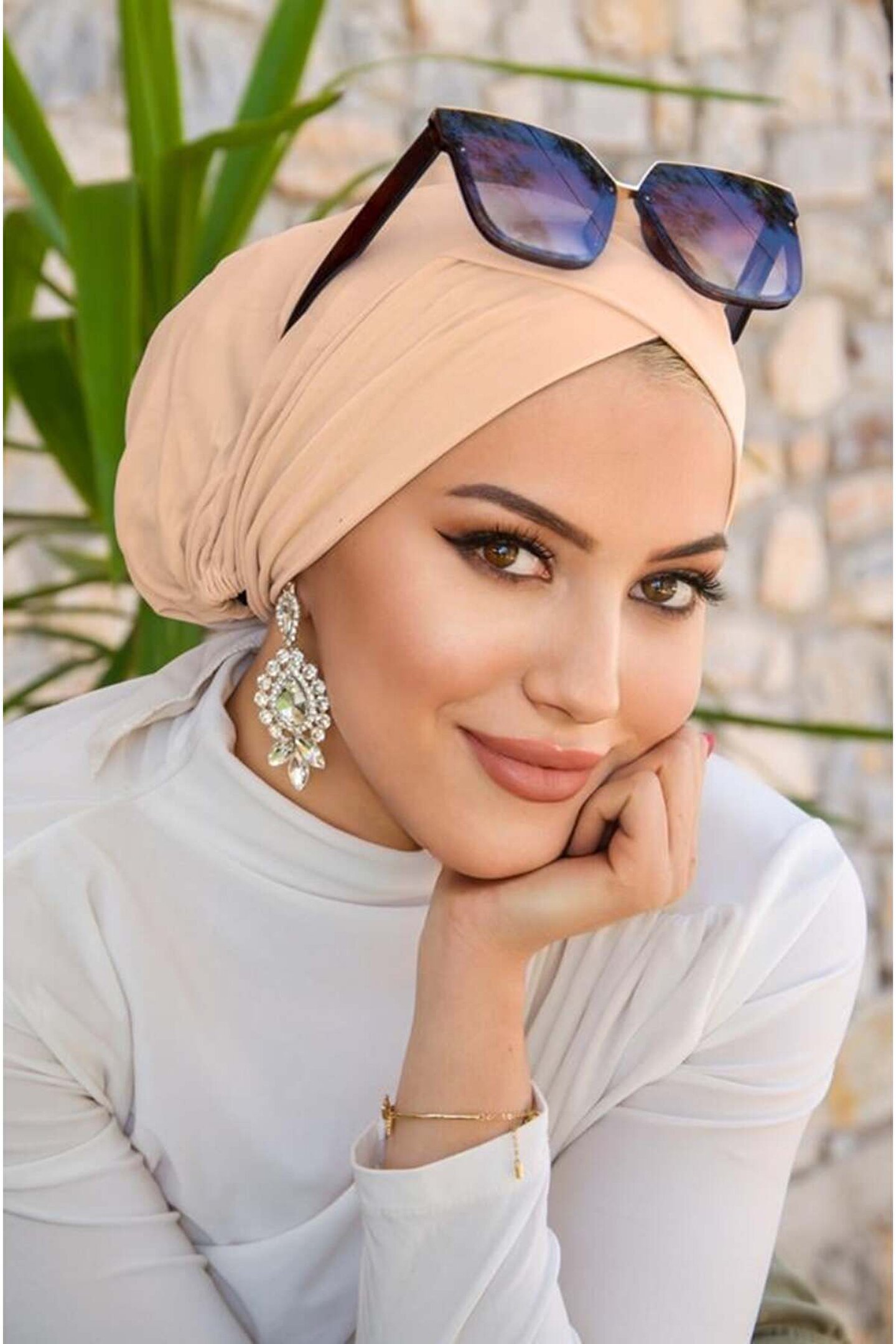 Aişe tesettür Kemik Krem Çapraz Bantlı Deniz - Havuz Bonesi