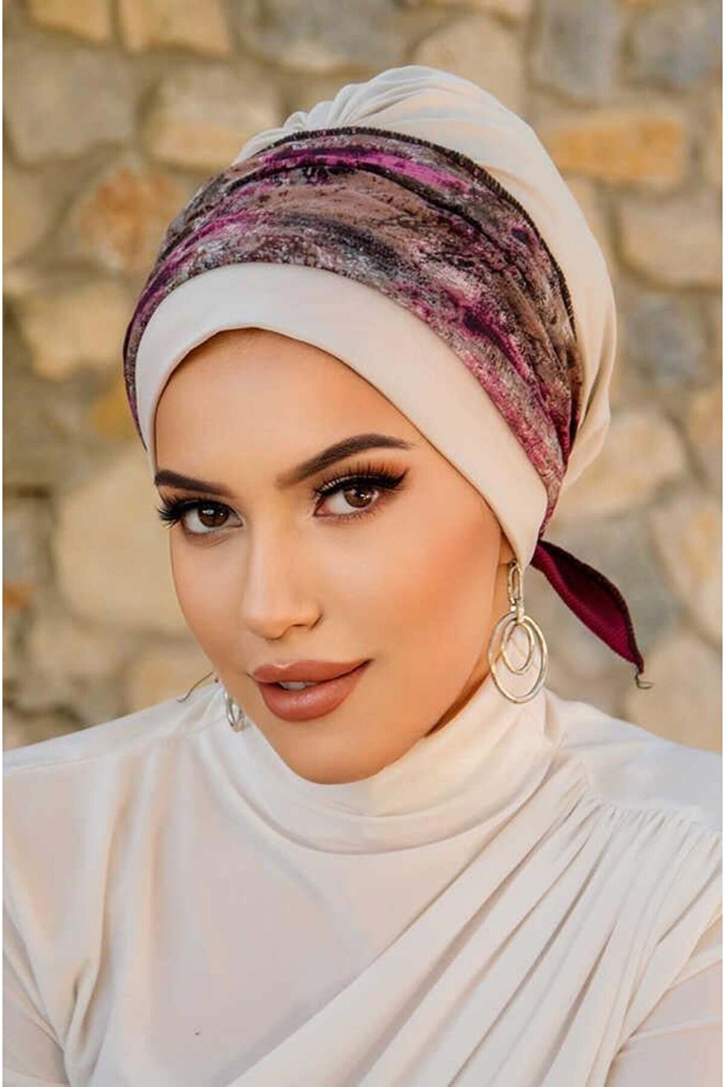 Aişe tesettür Kemik Mürdüm Batik Desen Bantlı Bone