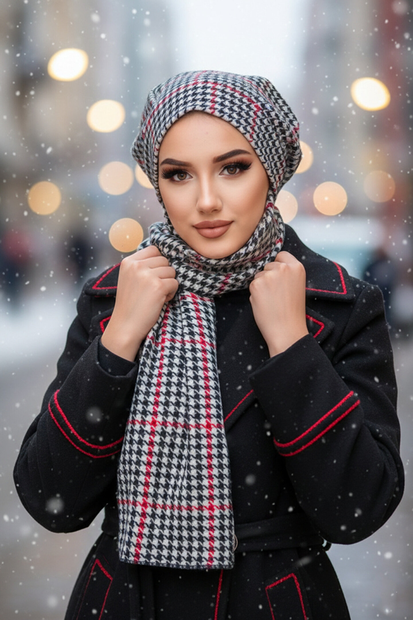 Aişe tesettür Kırmızı Kazayağı Atkılı Tesettür Bere