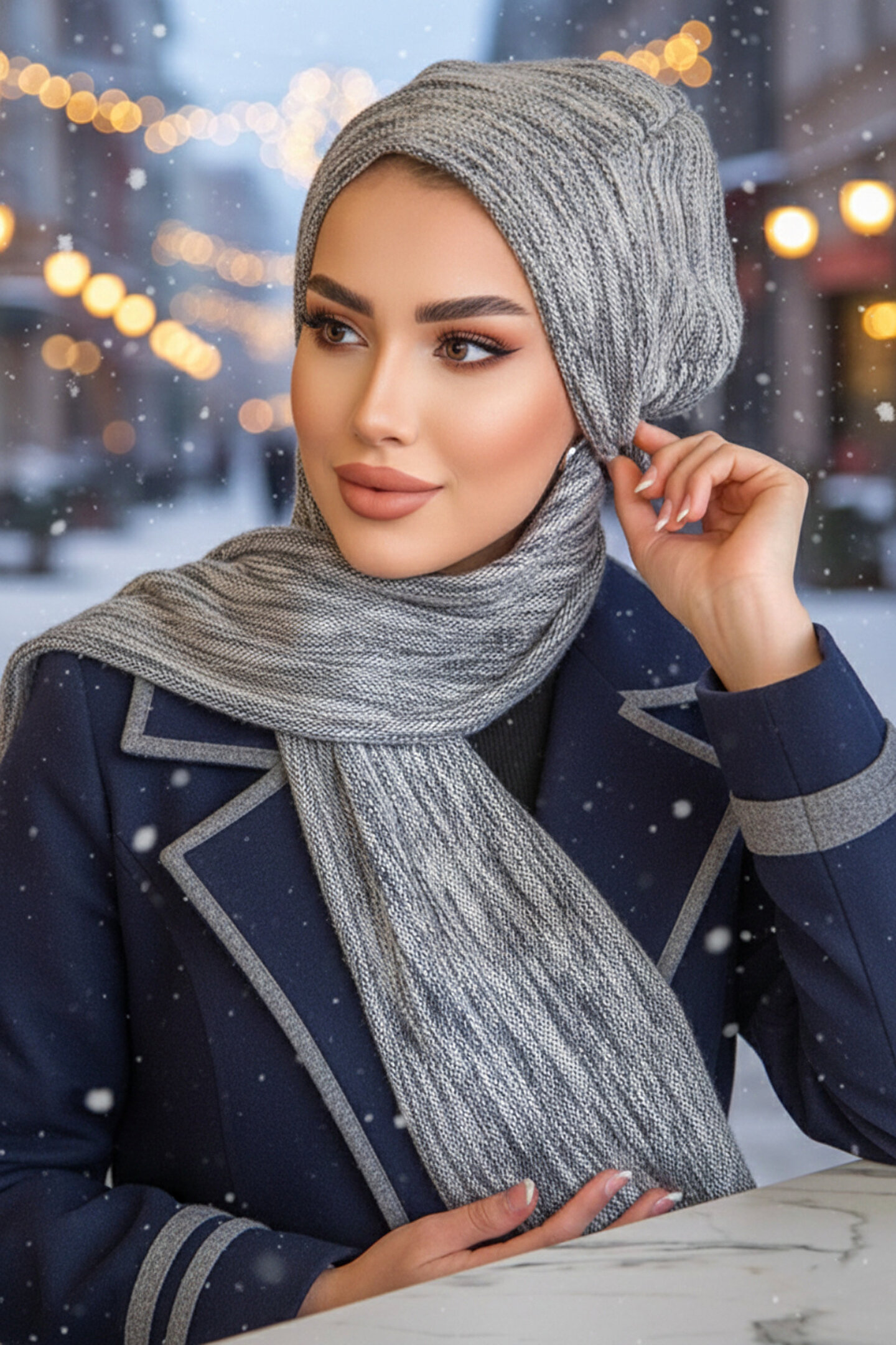 Aişe tesettür Kot Lacivert Desen Tesettür Bere
