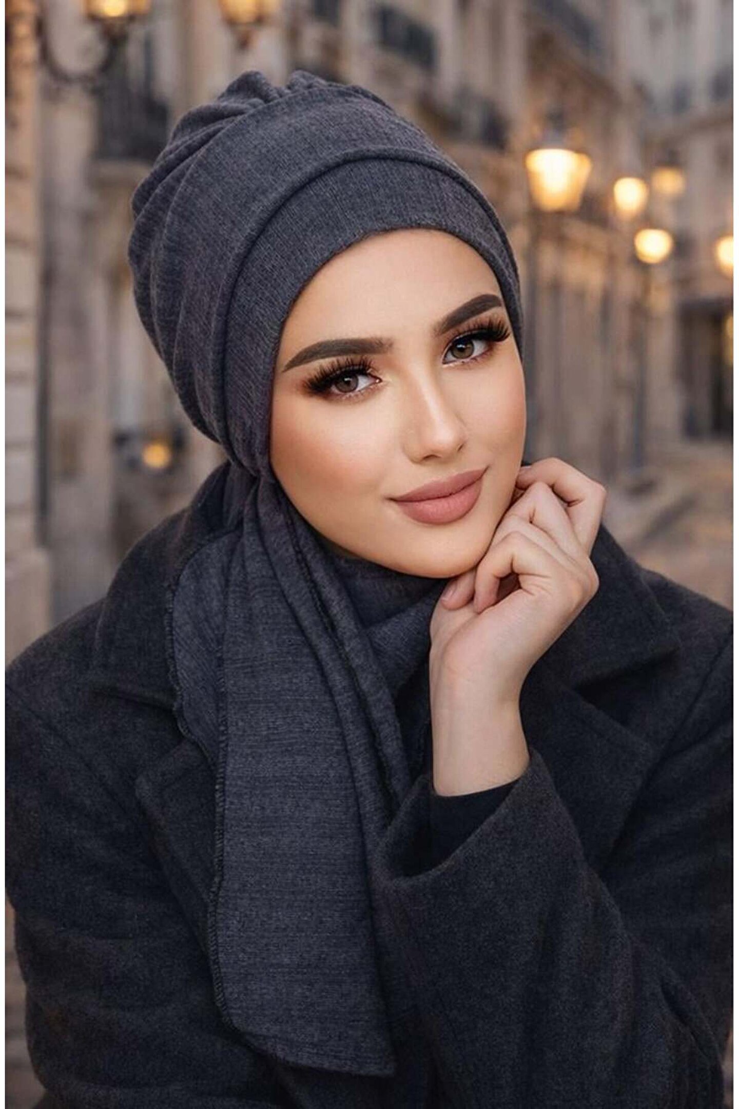 Aişe tesettür Koyu Gri Triko Atkılı Tesettür Bone