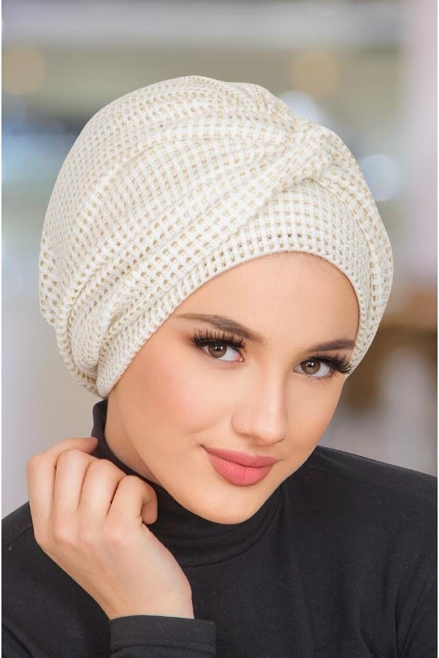 Aişe tesettür Krem Ajurlu Hazır Burgu Detaylı Bone