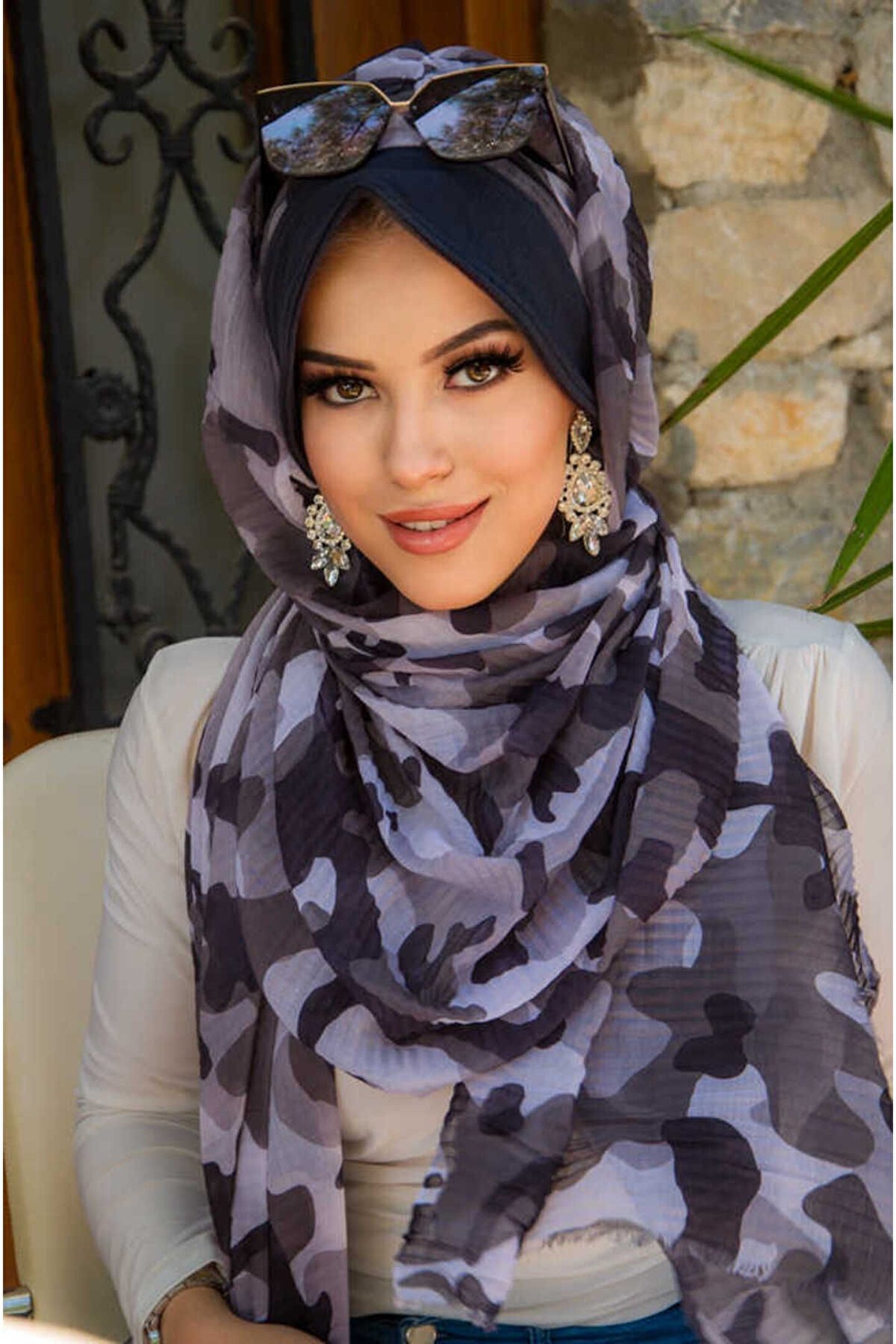 Lacivert Beyaz Kamuflaj Pilise Şapkalı Şal