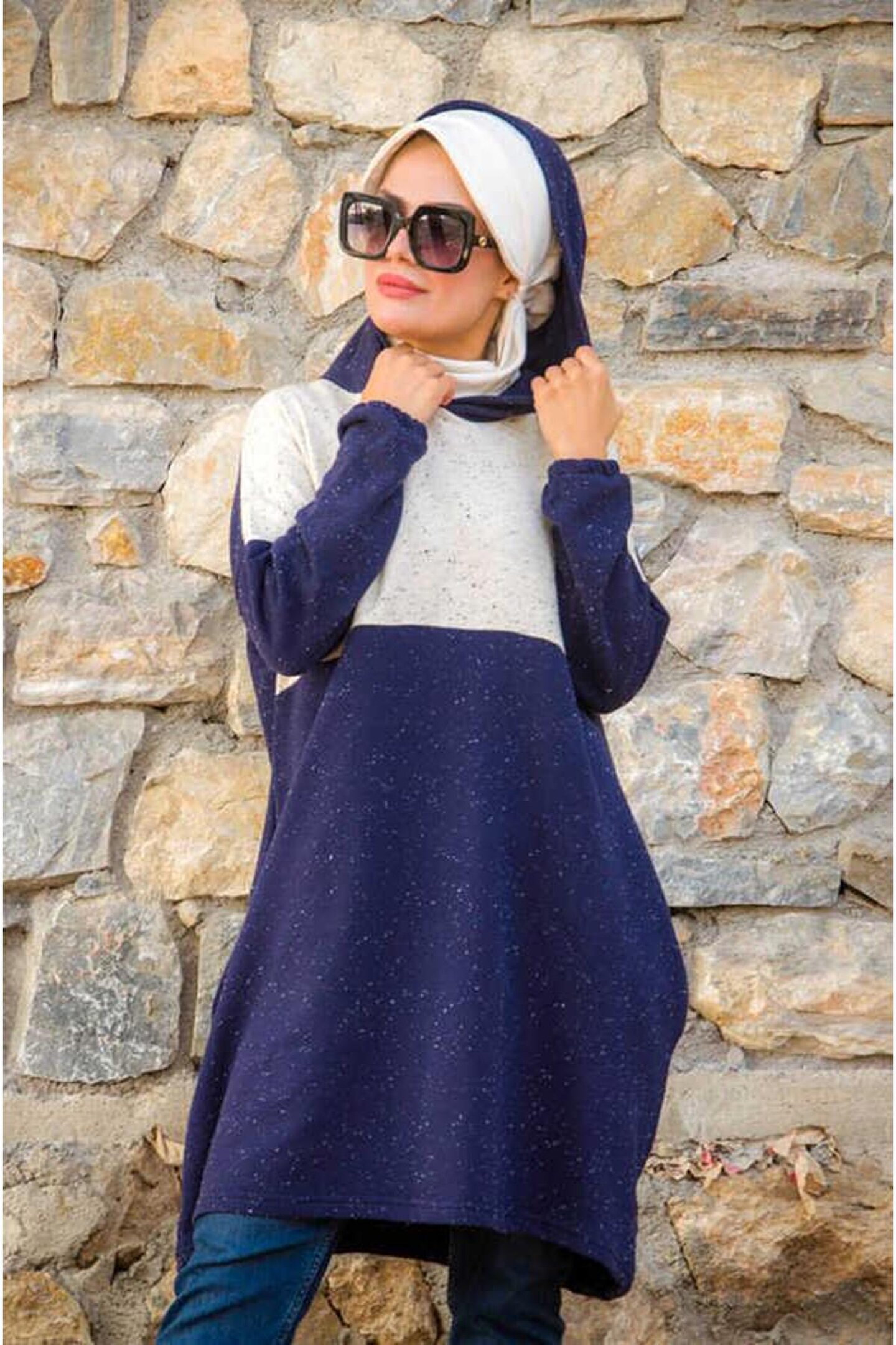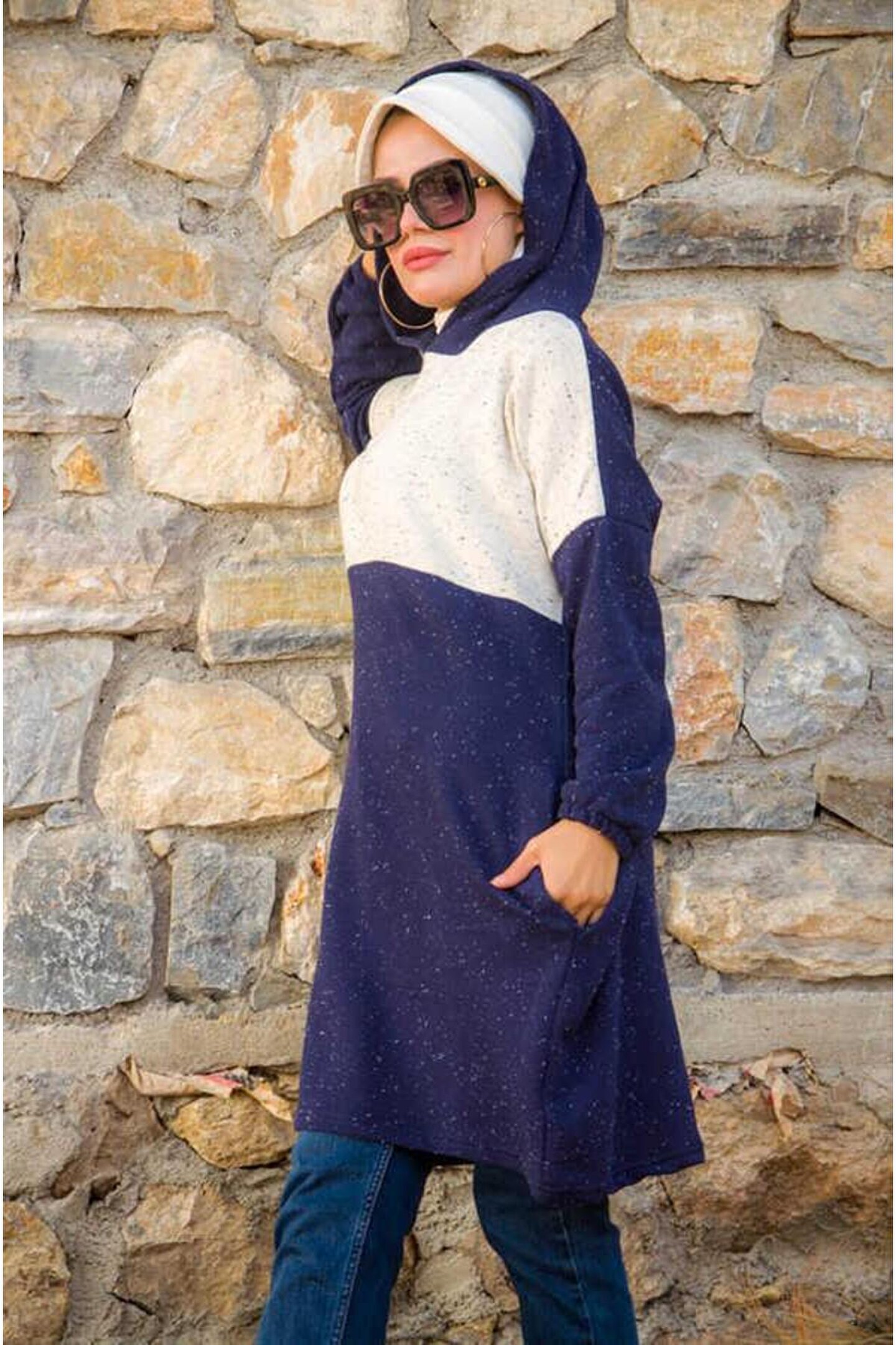 Sonbahar ve Kış Şıklığınızı Lacivert Beyaz Kırçıllı Spor Sweat ile Tamamlayın Kumaş Özelliği : Kışlık çelik örme Ürün Özelliği : Mevsimlik kullanıma uygundur. ; Ürün Boyu 100 cm. ; Kapüşonlu , lastikli kol , rahat kesim. ; 36-48 beden uyumludur. ; Yıkama : 30 derecede sıktırmadan yıkanabilir. ; Manken Ölçüleri Boy : 168 cm Göğüs : 80 cm Bel : 68 cm Kalça : 99 cm;