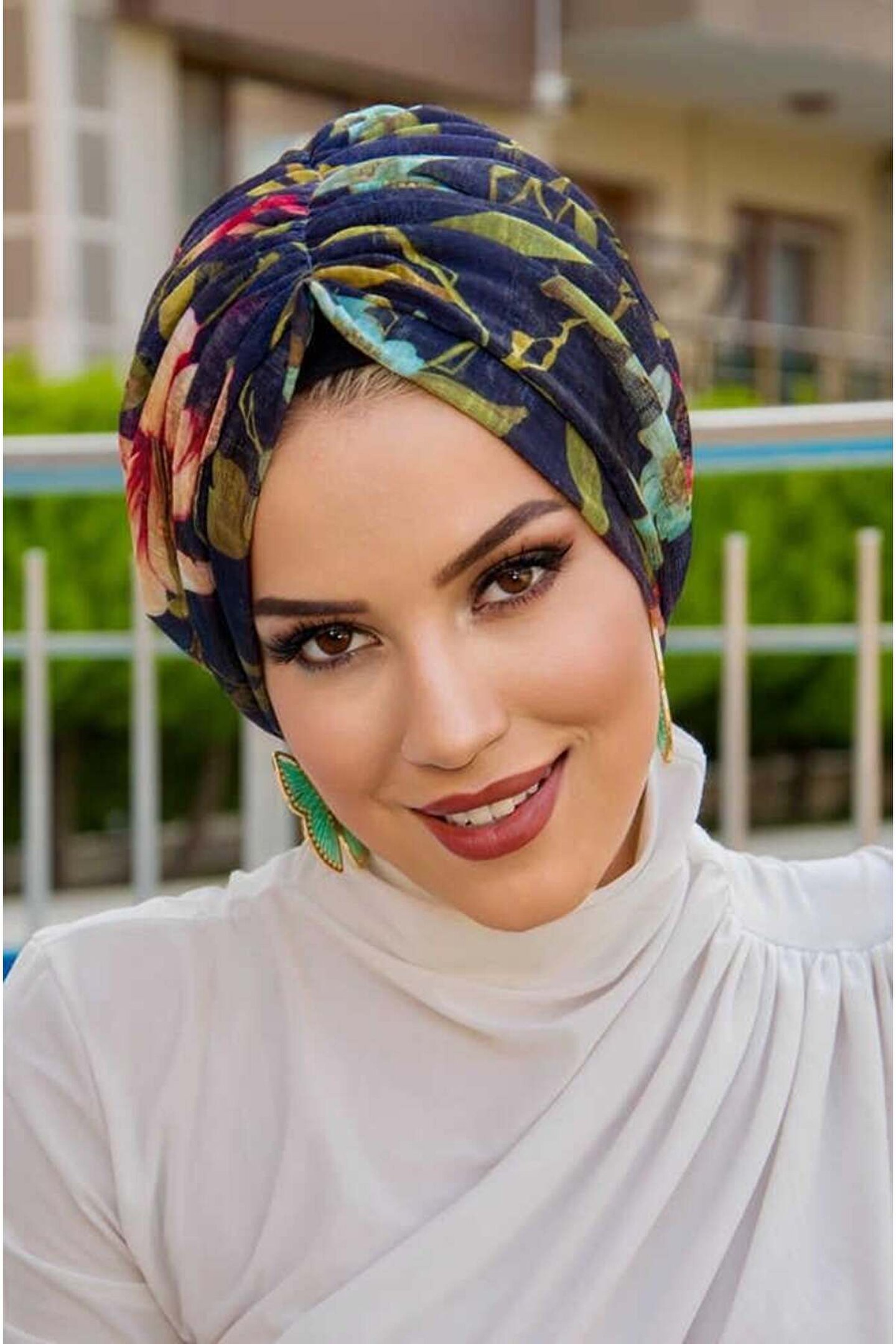 Aişe tesettür Lacivert Çiçek Desen Tokalı Bone