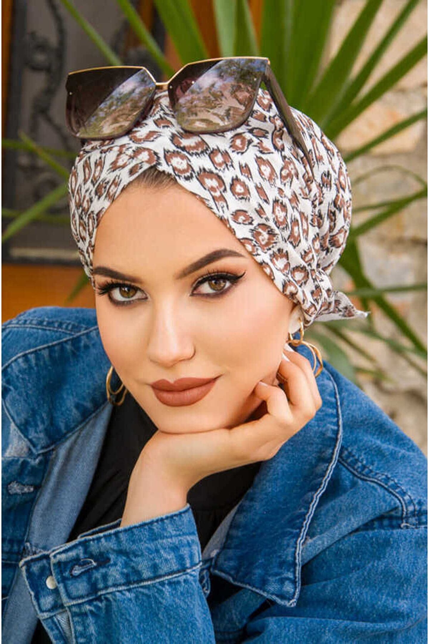 Uçuk Sarı Kahve Çiçek Desen Hazır Şal