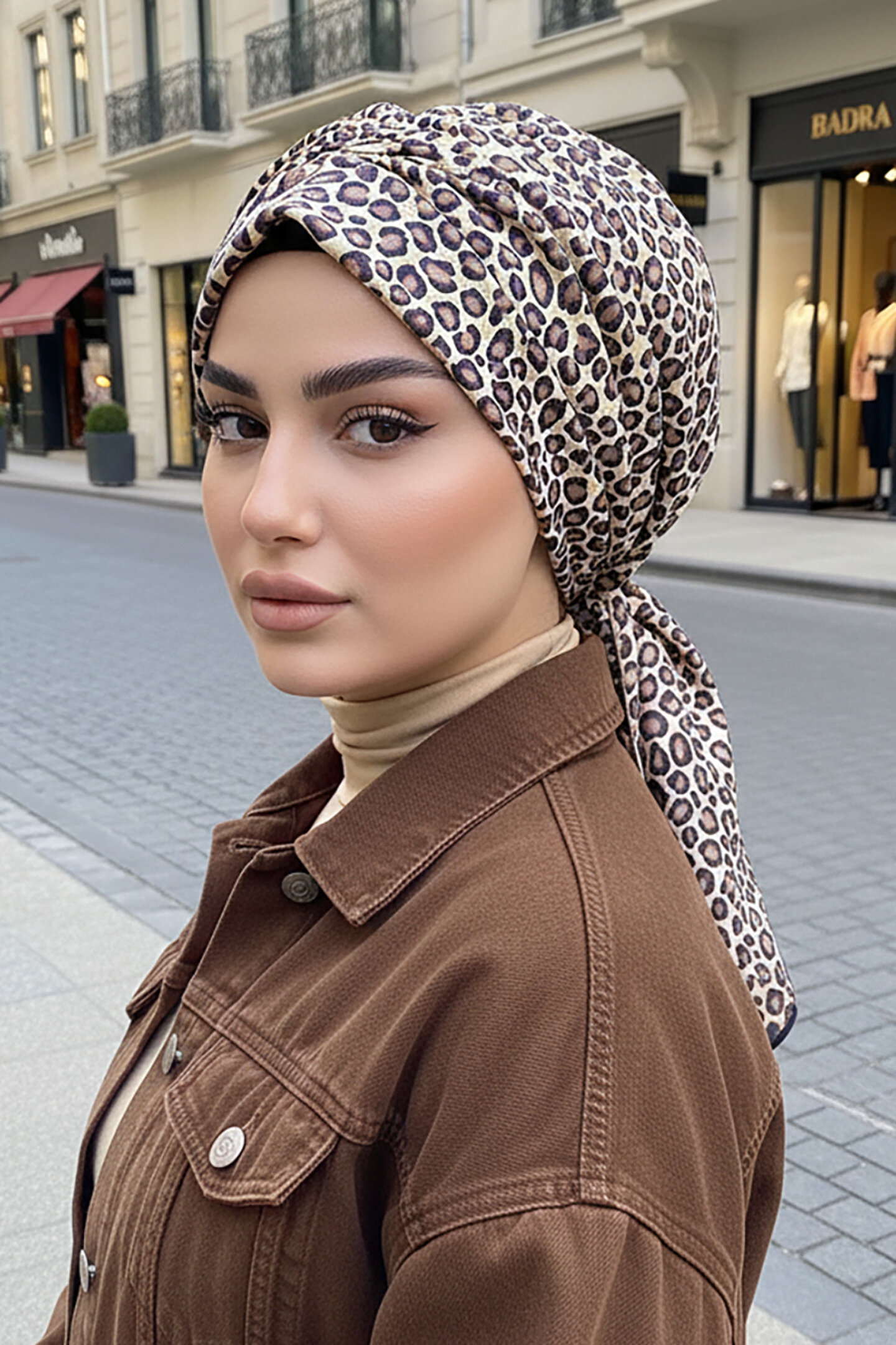 Tarzıyla fark yaratmak isteyen kadınlar için özel olarak tasarlanan Leopar Desenli Tokalı Bone, tesettür modasında iddialı bir duruş sergiliyor. Leopar deseninin klasik zarafetini modern bir tasarım olan toka detayıyla birleştiren bu model, günlük hayatın hızına şıklık katıyor.