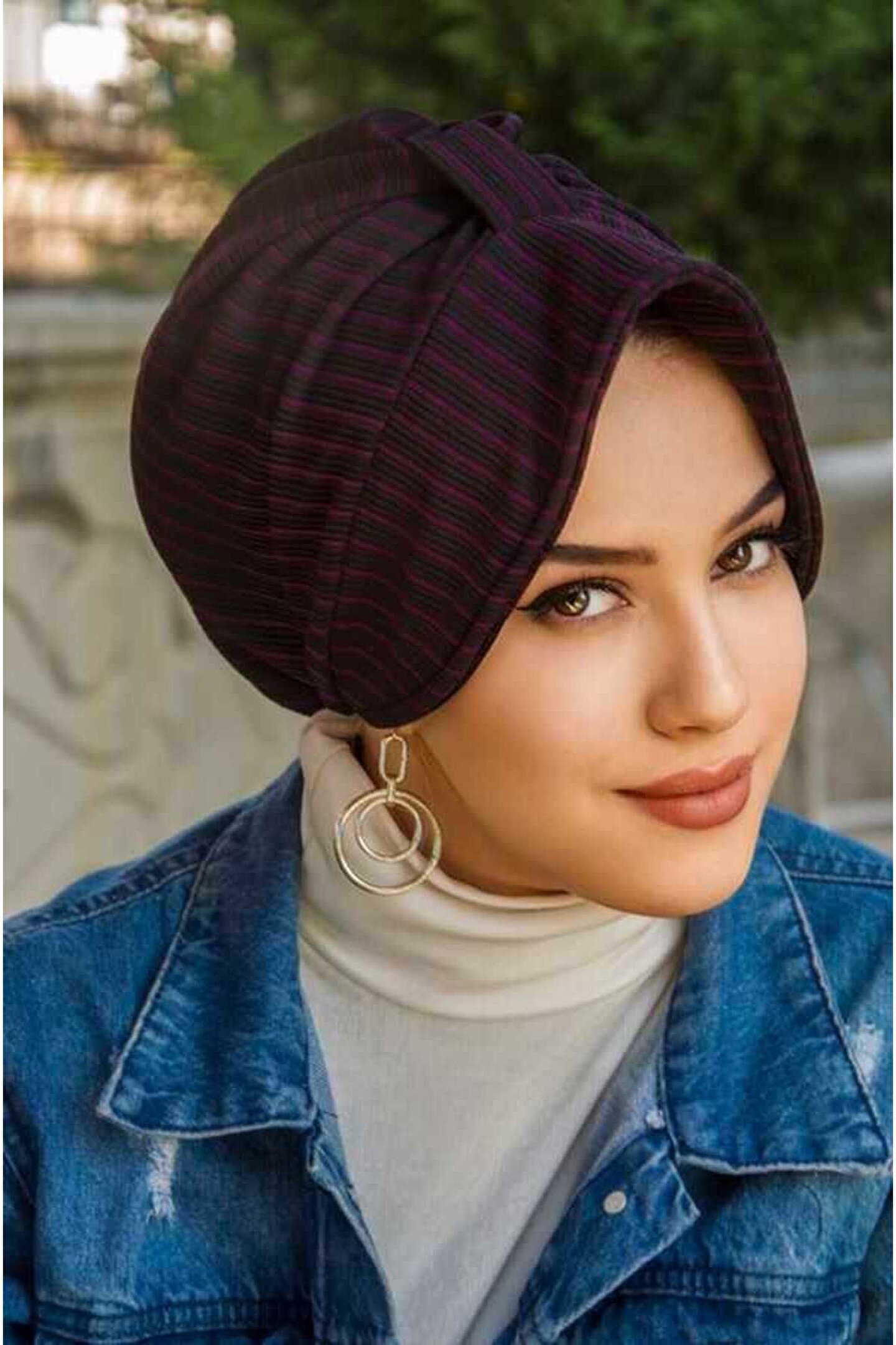 Mürdüm Lila Desenli Çapraz Bantlı Bone