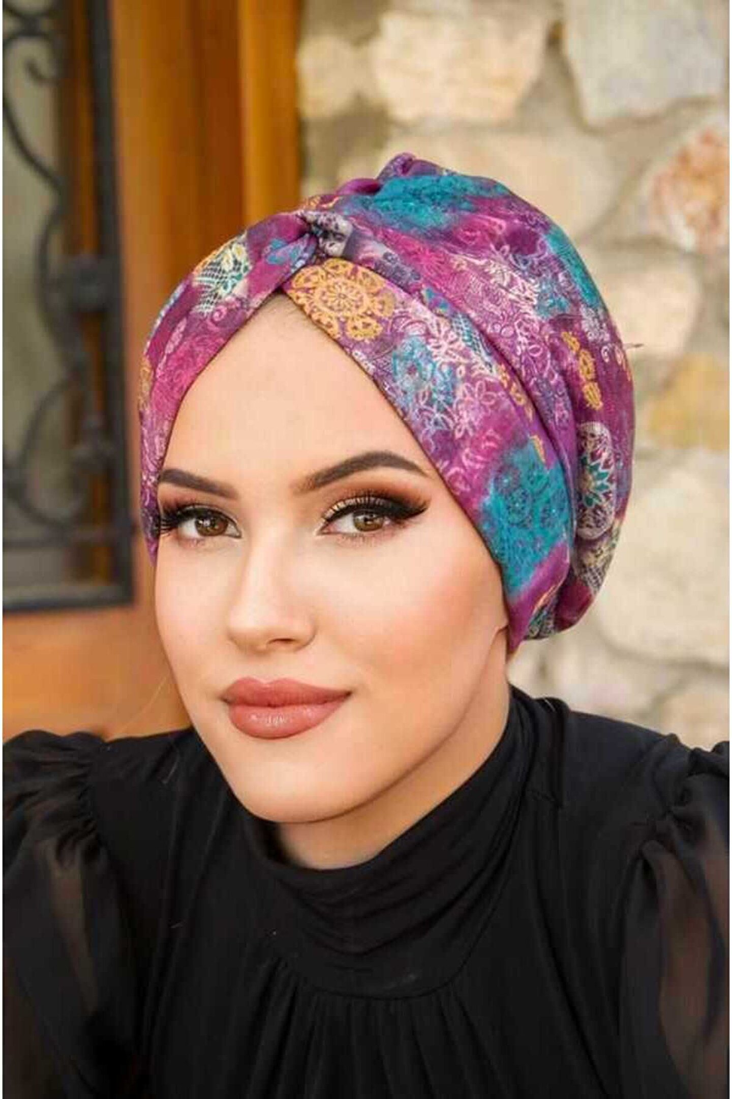 Mürdüm Lila Desenli Çapraz Bantlı Bone
