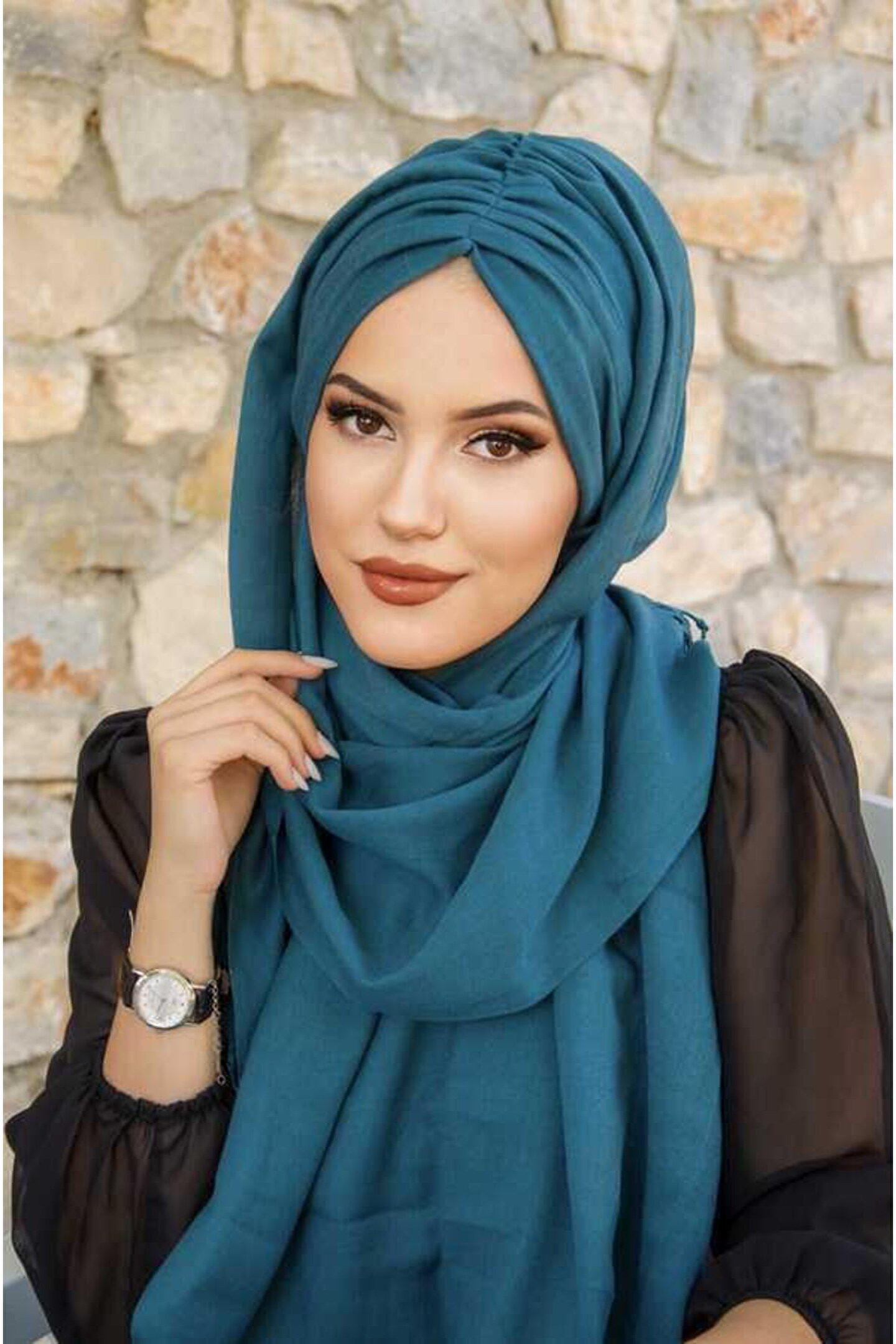 Aişe tesettür Petrol Büzgülü Hazır Şal
