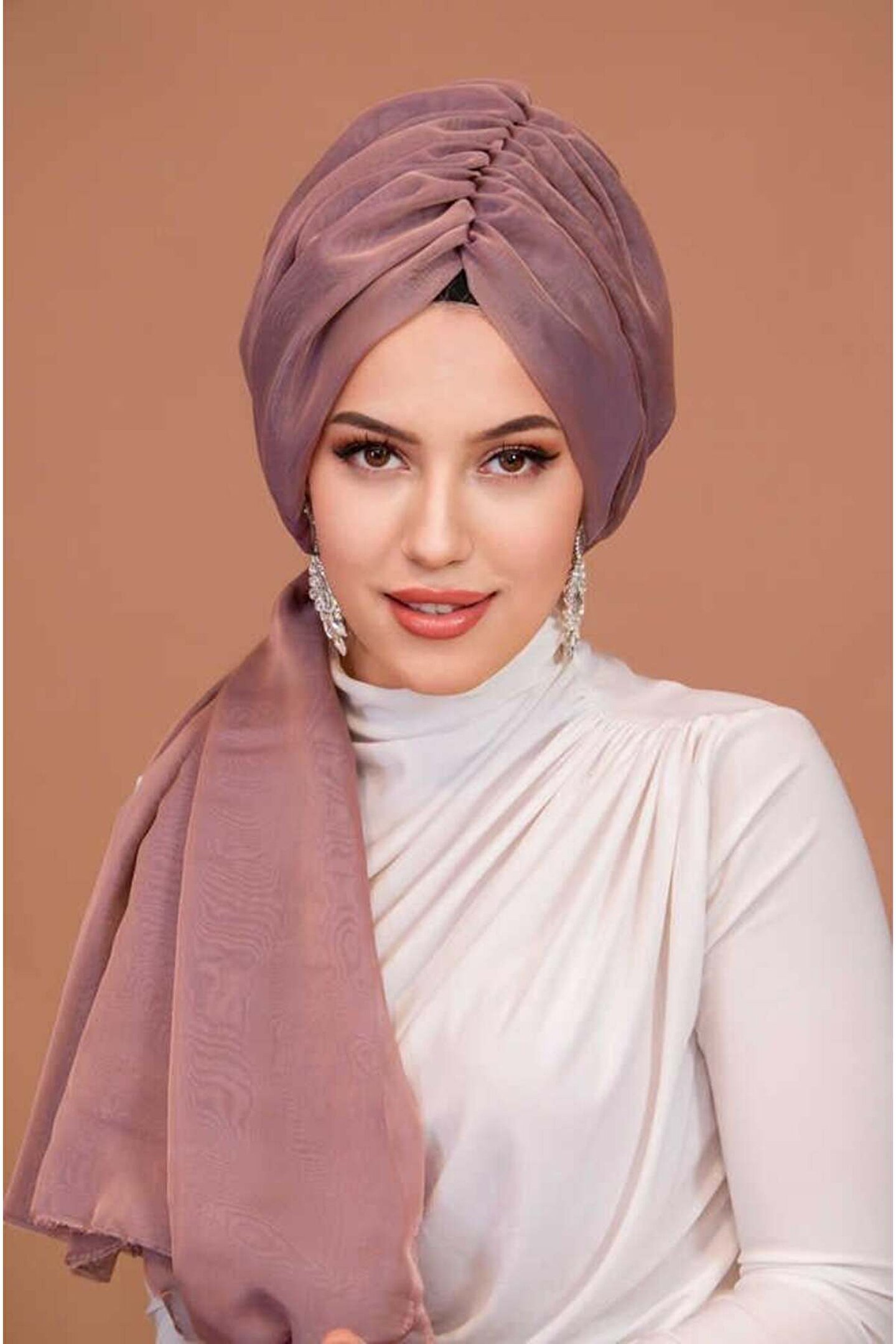 Aişe tesettür Pudra Janjan Şifon Tokalı Bone