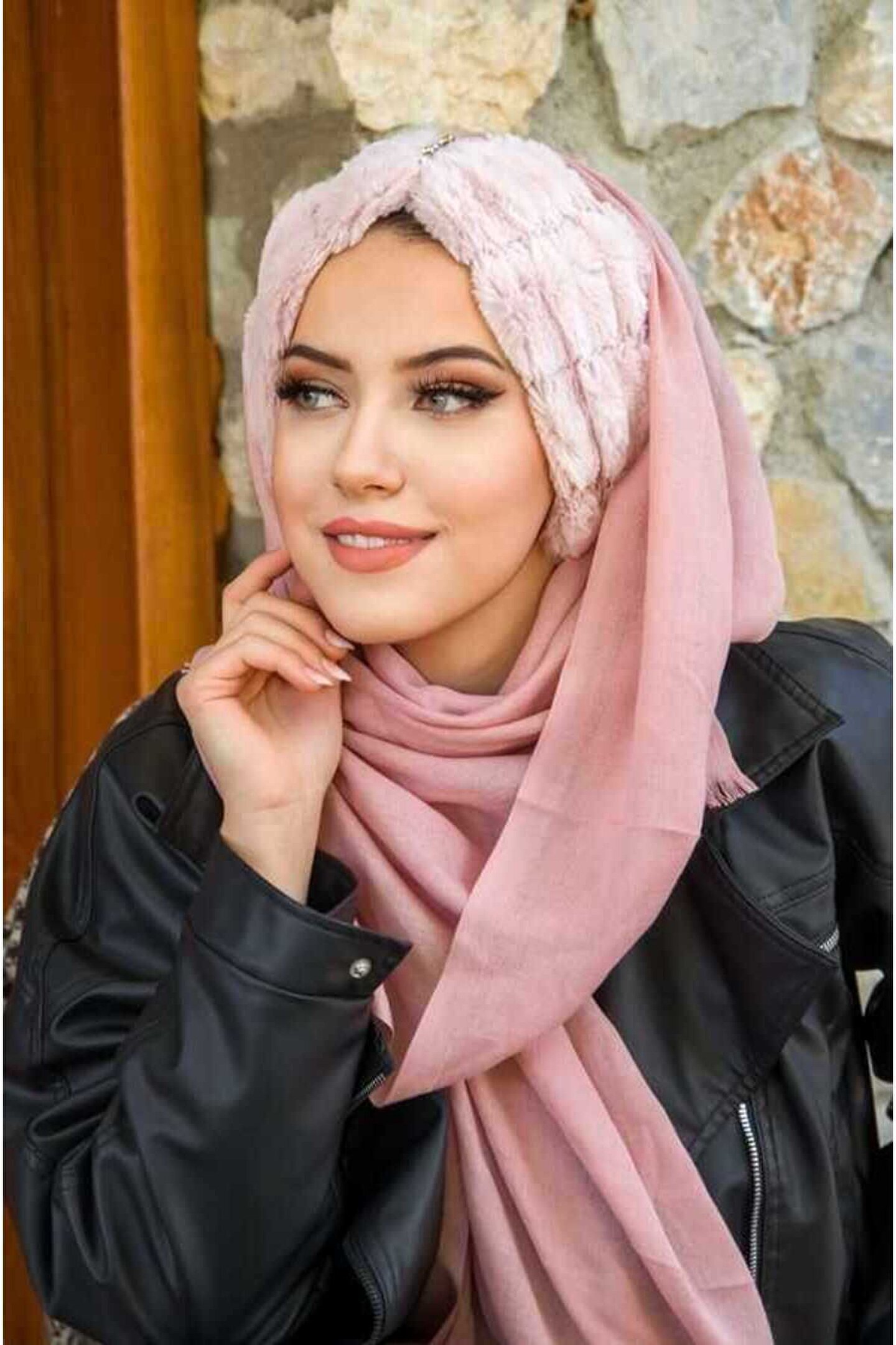 Beyaz Gold Tokalı Kışlık Tesettür Şapka