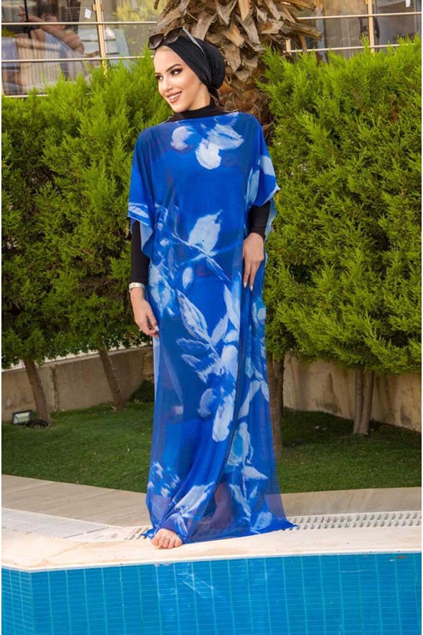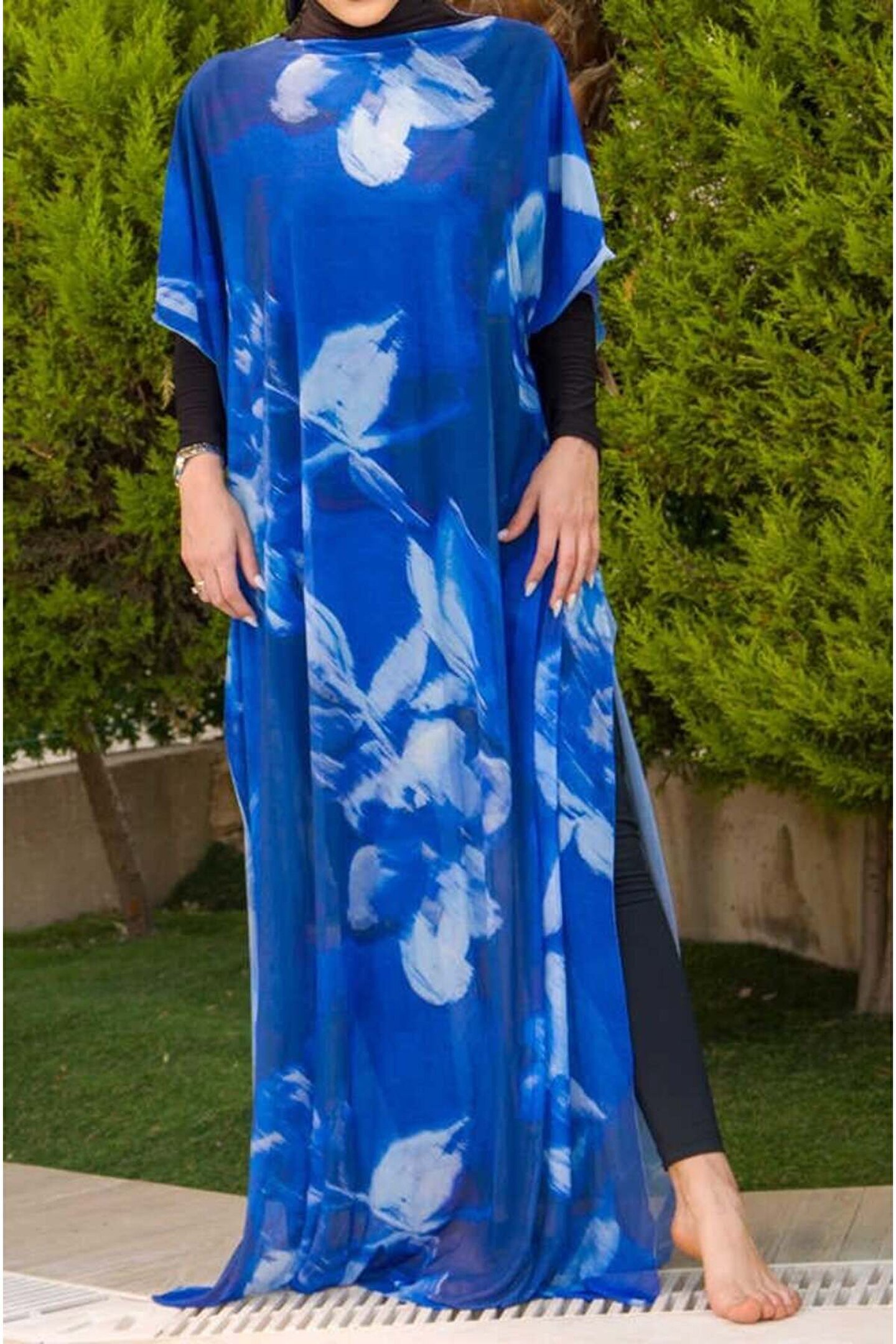 Aişe tesettür Saks Mavi Desenli Tesettür Pareo