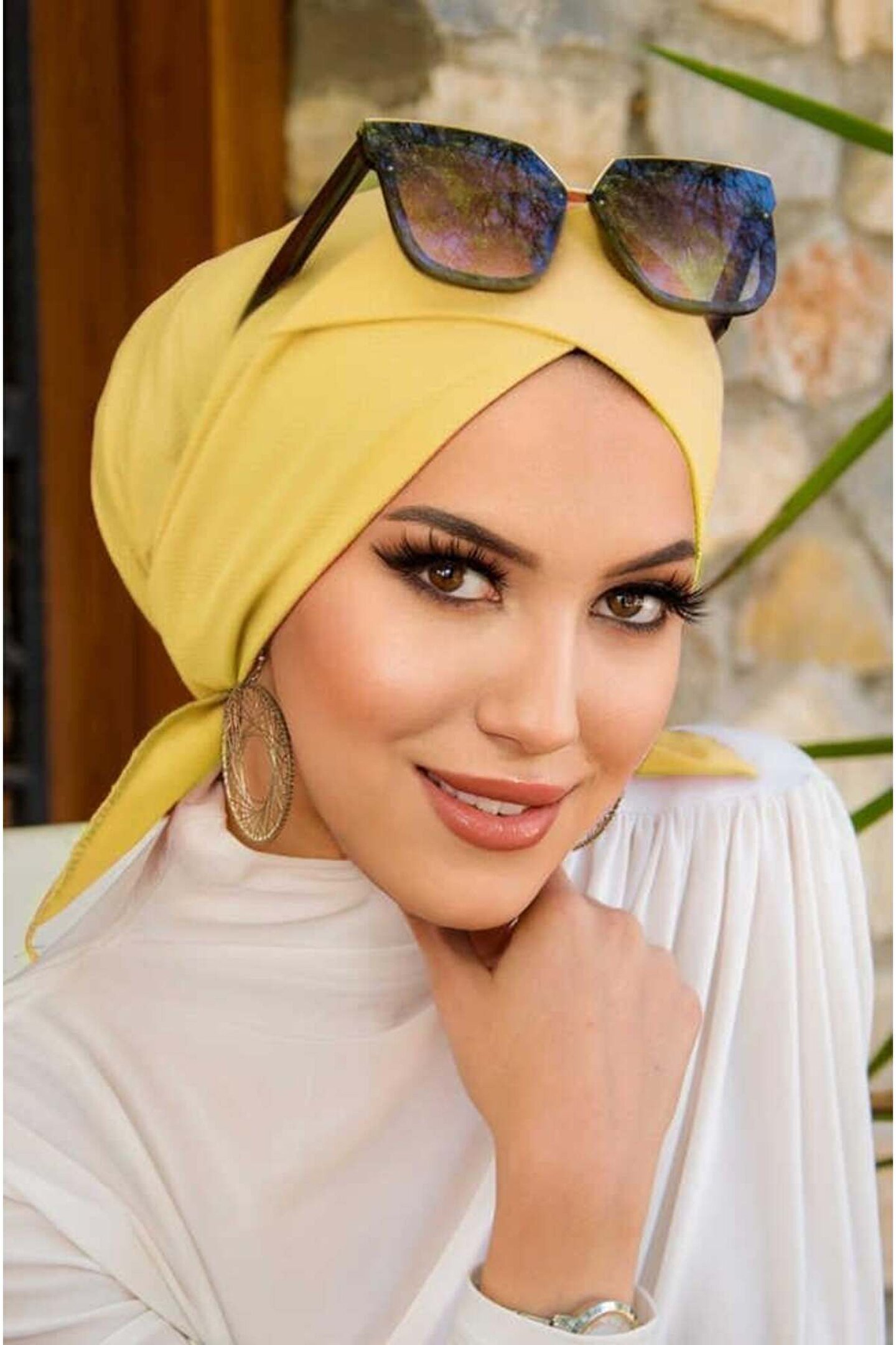 Aişe tesettür Sarı Çapraz Bone Deniz - Havuz Bonesi