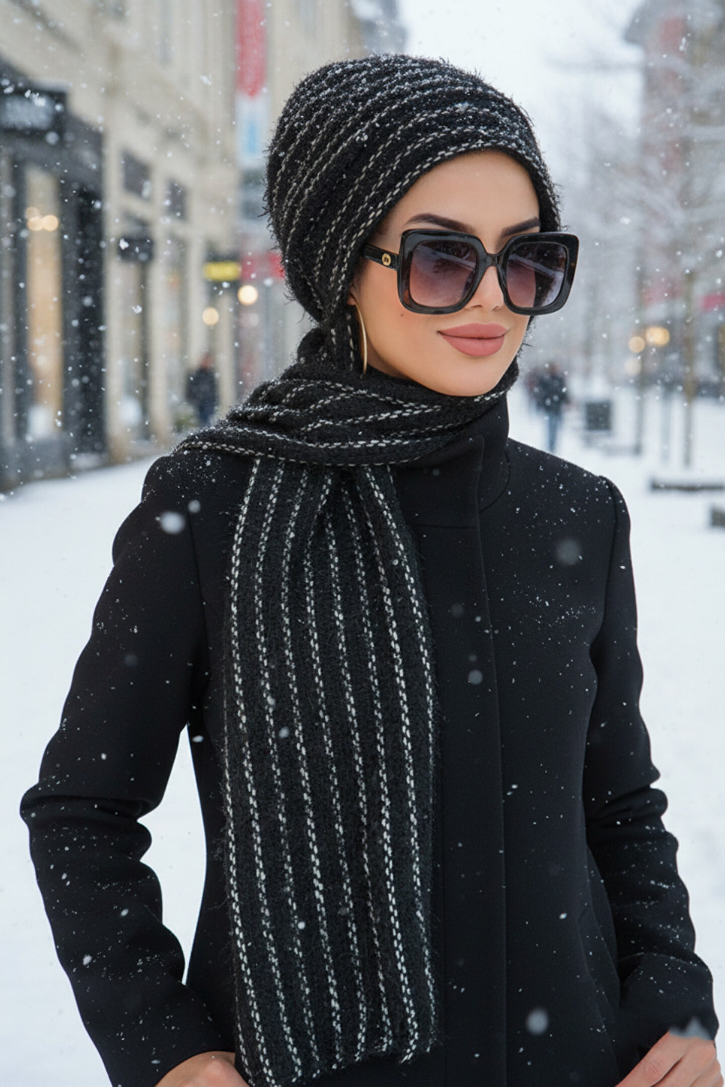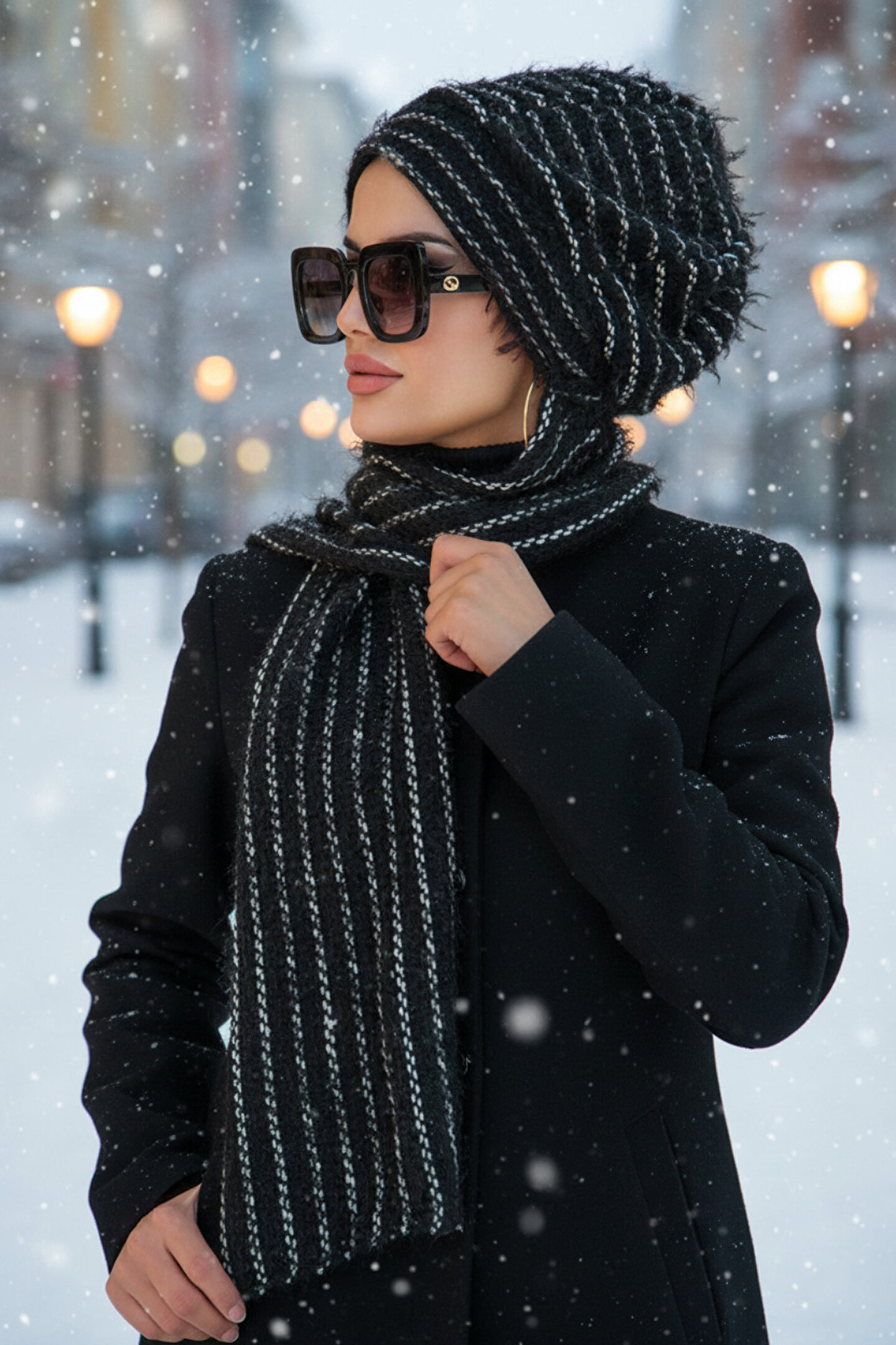 Siyah Beyaz Triko Tesettür Bere Hayatı Kolaylaştırır Kumaş Cinsi : Triko Ürün Özelliği : Hazır atkılı bere. ; Kışlık kullanılabilir. ; Atkı ve bere birleşiktir. ; Yıkama: 30 derecede yıkanabilir.;