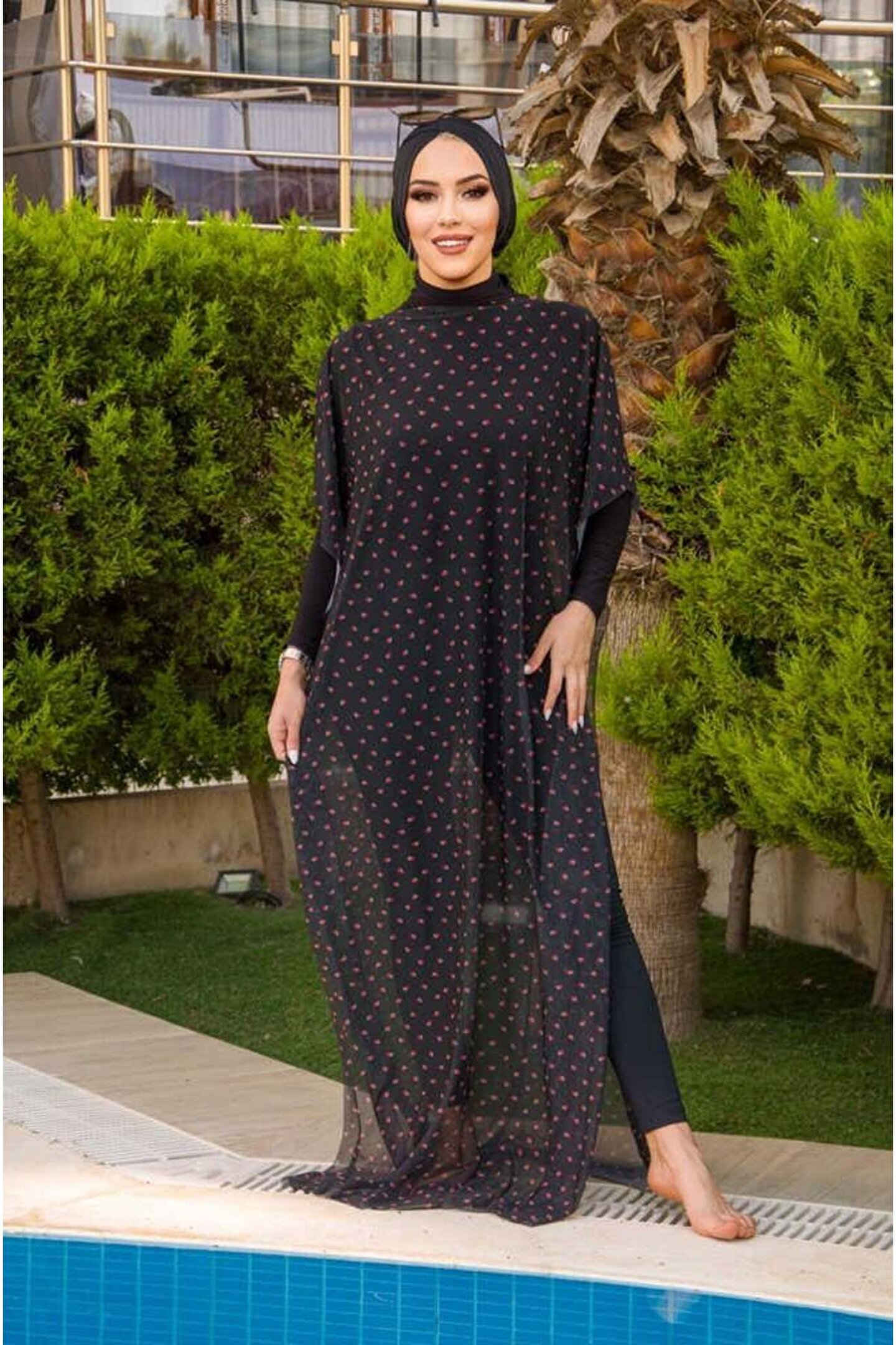Aişe tesettür Siyah Çilek Desenli Tesettür Pareo