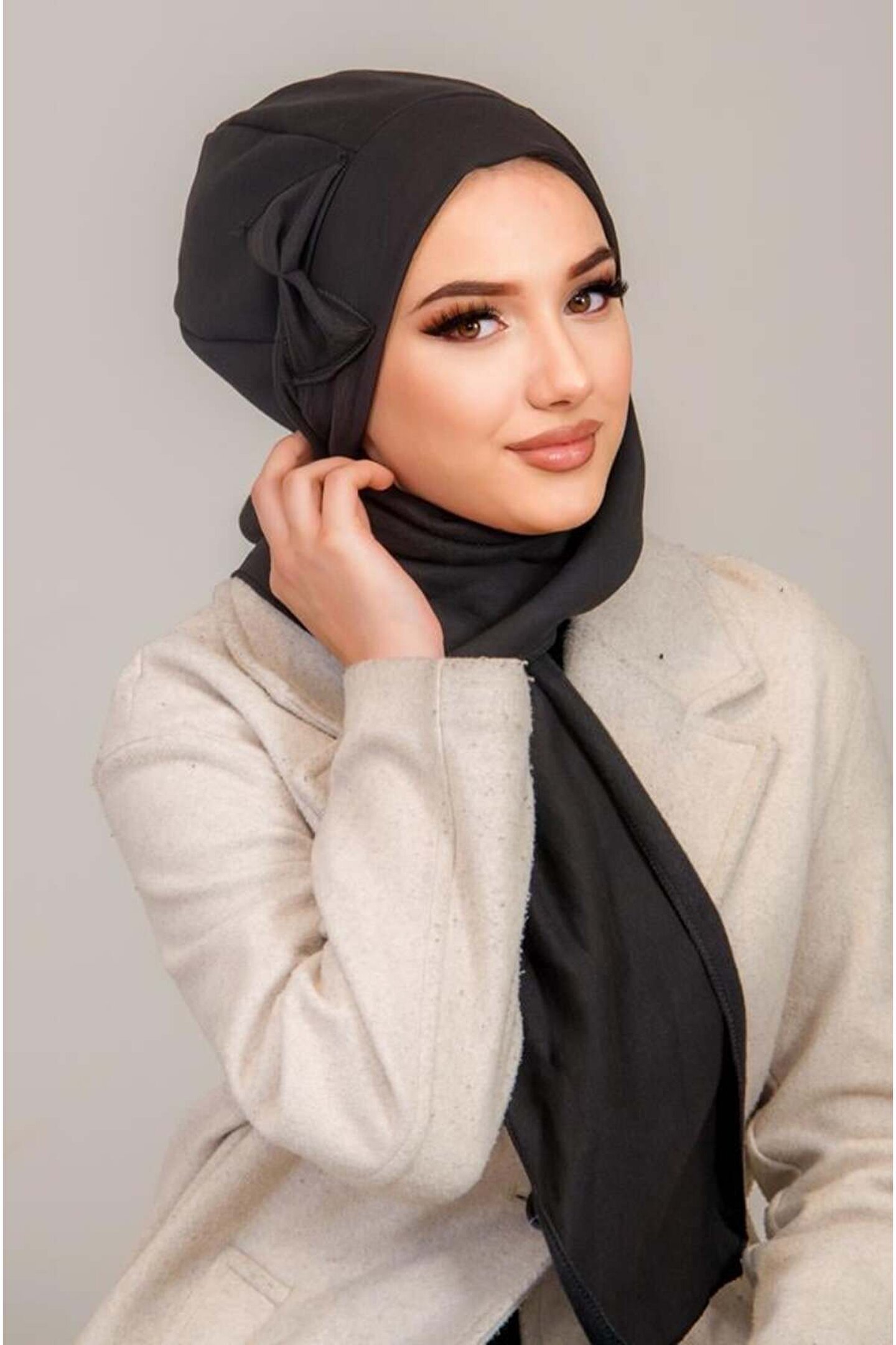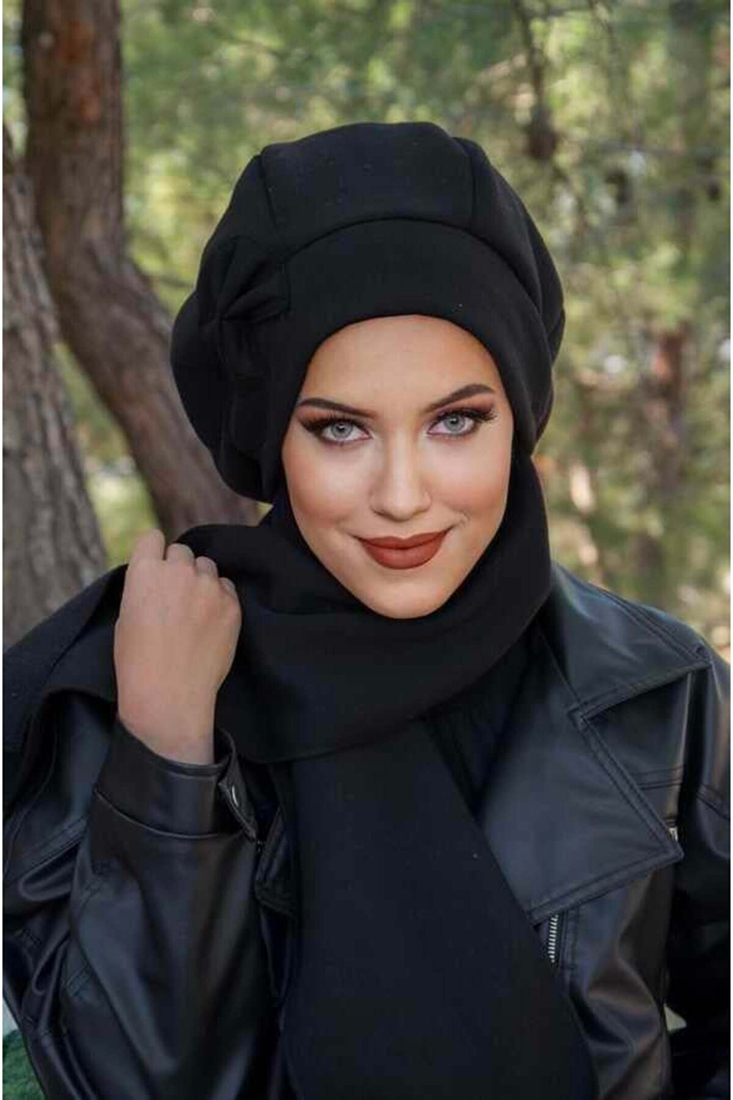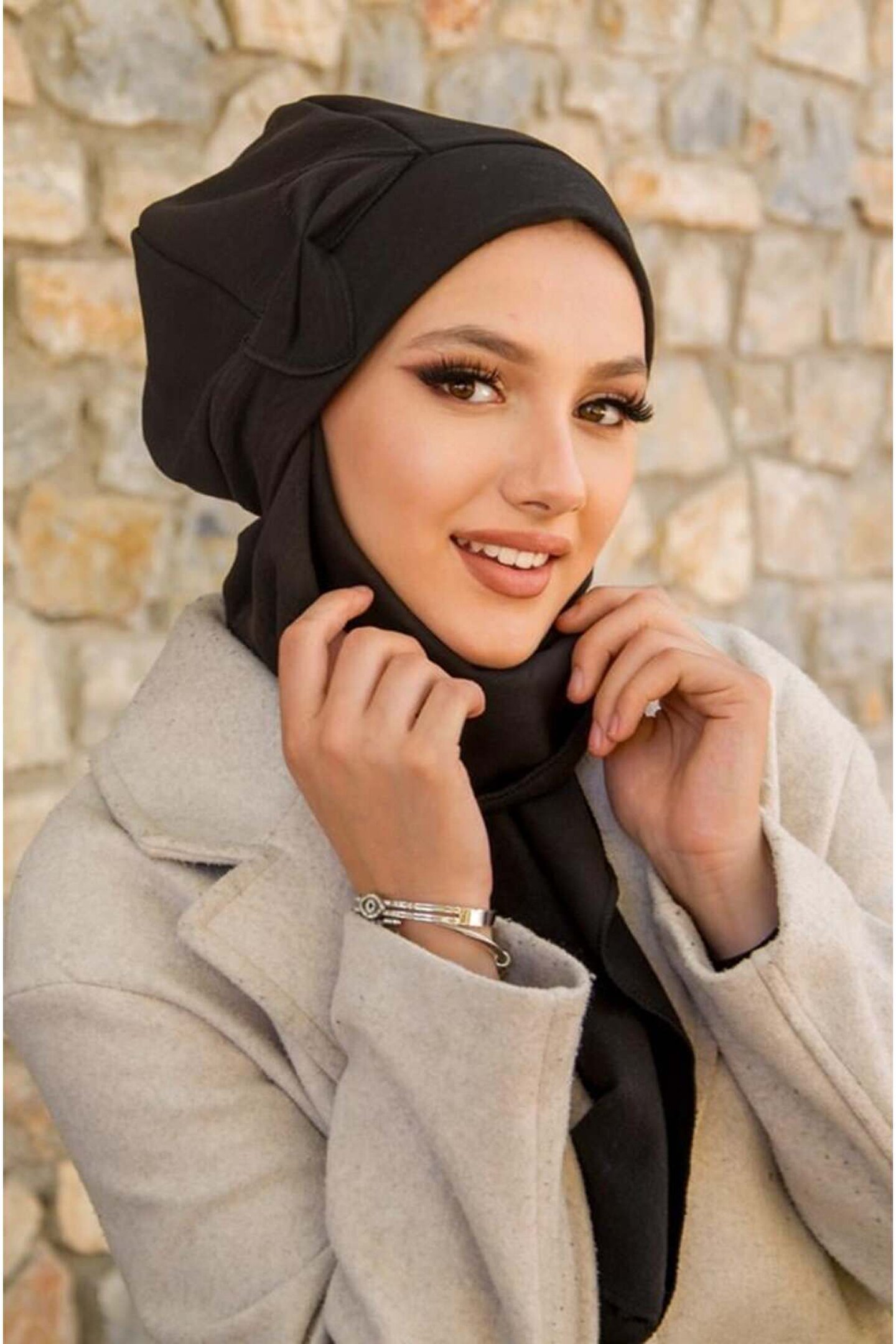 Aişe tesettür Siyah Fiyonklu Tesettür Bere