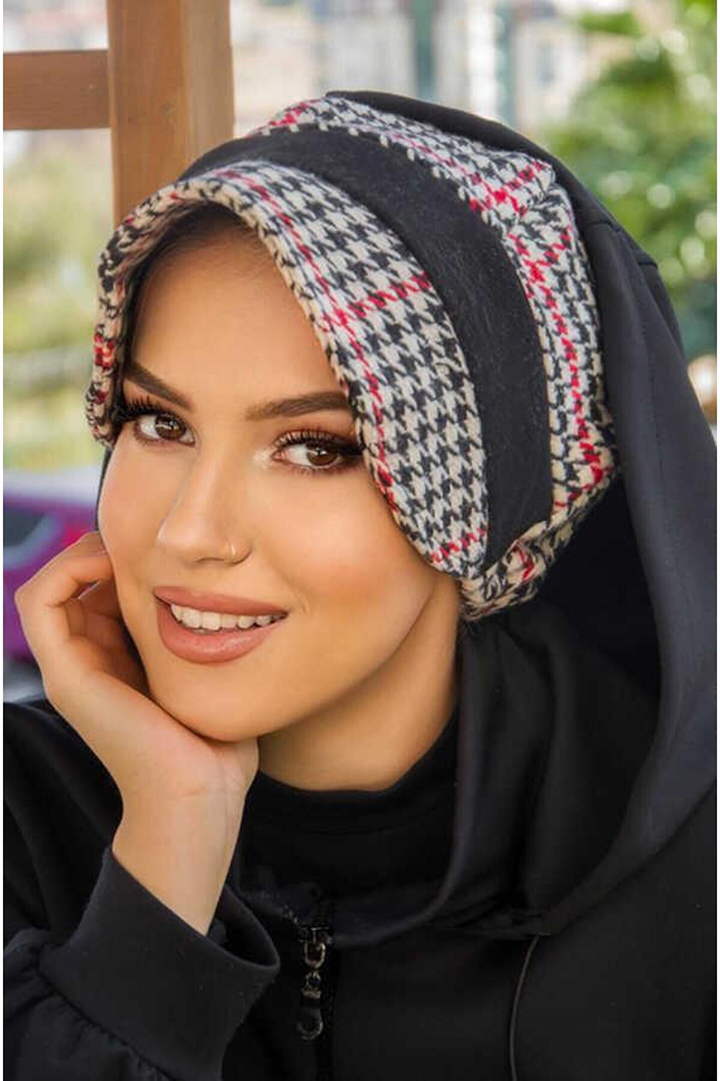 Tesettür giyim koleksiyonuna özel tasarlanmış, şıklığı ve rahatlığı bir arada sunan siyah garnili şapka bone; Sportif aktivitelerinizde veya günlük kullanımda konforlu bir deneyim için ideal, tüm yaş gruplarına hitap eden tasarım; Örme kumaş yapısı sayesinde esnek ve nefes alabilen bir yapıya sahip, uzun süreli kullanımlarda bile rahatlık sağlar; Kolay bakım imkanı sunan yıkama talimatları ile pratik kullanım; 'type 1' yıkama talimatına uygun şekilde temizlenebilir; Kışlık dokuma materyal bileşeni ile soğuk havalarda başınızı sıcak tutarken şık görünümünüzden ödün vermezsiniz;