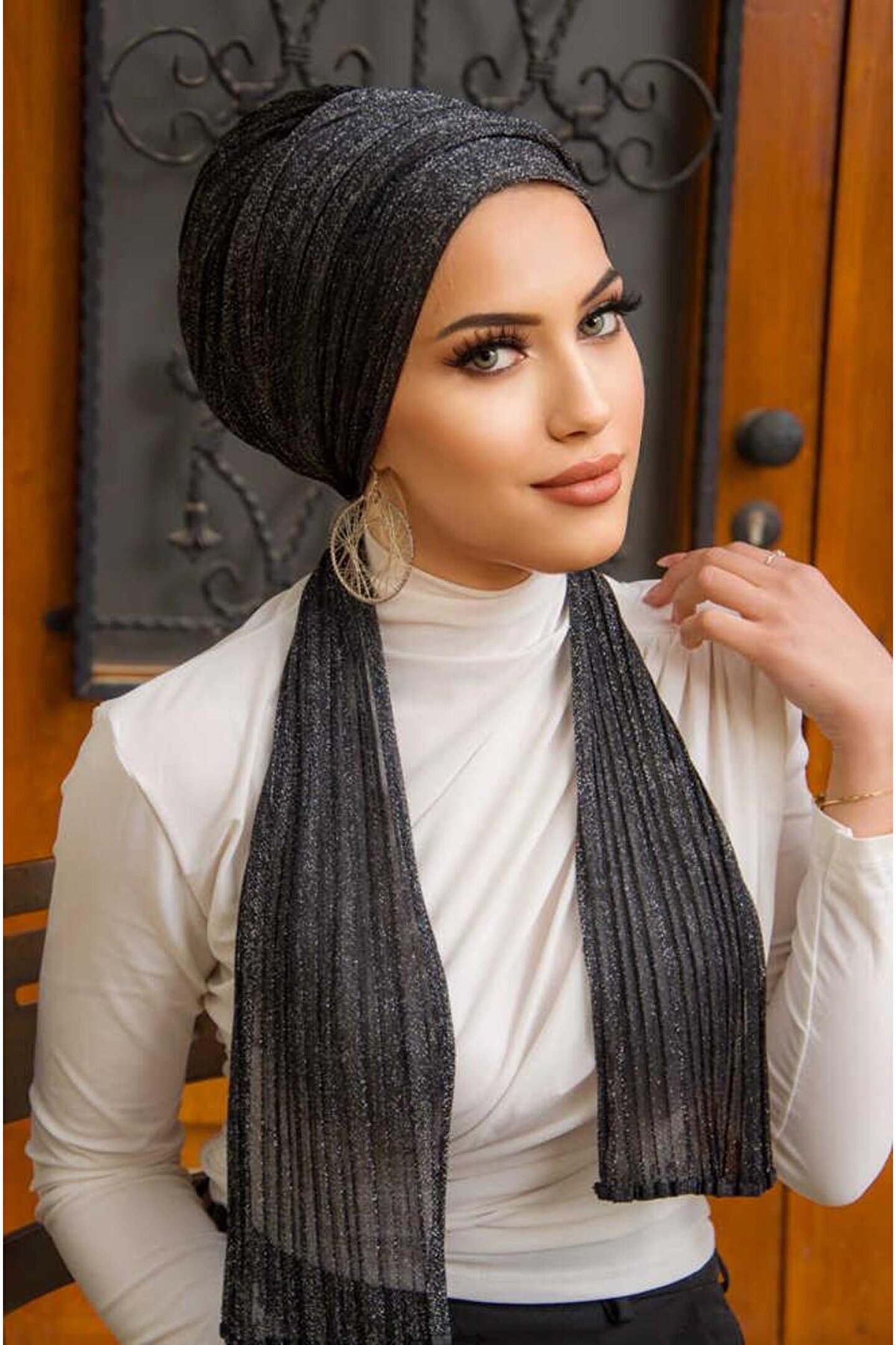 Tesettür giyim koleksiyonuna özel tasarlanmış, şıklığı ve zarafeti ön planda tutan siyah simli piliseli abiye atkılı bone; Örme kumaş yapısı ile konforlu bir kullanım sunar ve gün boyu rahatlık sağlar; Şık ve gece ortamları için ideal bir aksesuar olarak, özel davetlerde ve etkinliklerde göz alıcı bir görünüm kazandırır; %100 polyester materyal bileşeni sayesinde dayanıklılık ve uzun ömürlü kullanım vaat eder; Her yaş grubuna hitap eden tasarımıyla geniş bir kullanıcı yelpazesine sahiptir; gençlerden yetişkinlere herkes için uygundur; Kolay bakım imkanı sunan 30 derecede yıkama talimatına uygun şekilde temizlenebilir; böylece hijyenik ve pratik bir kullanım sağlar;