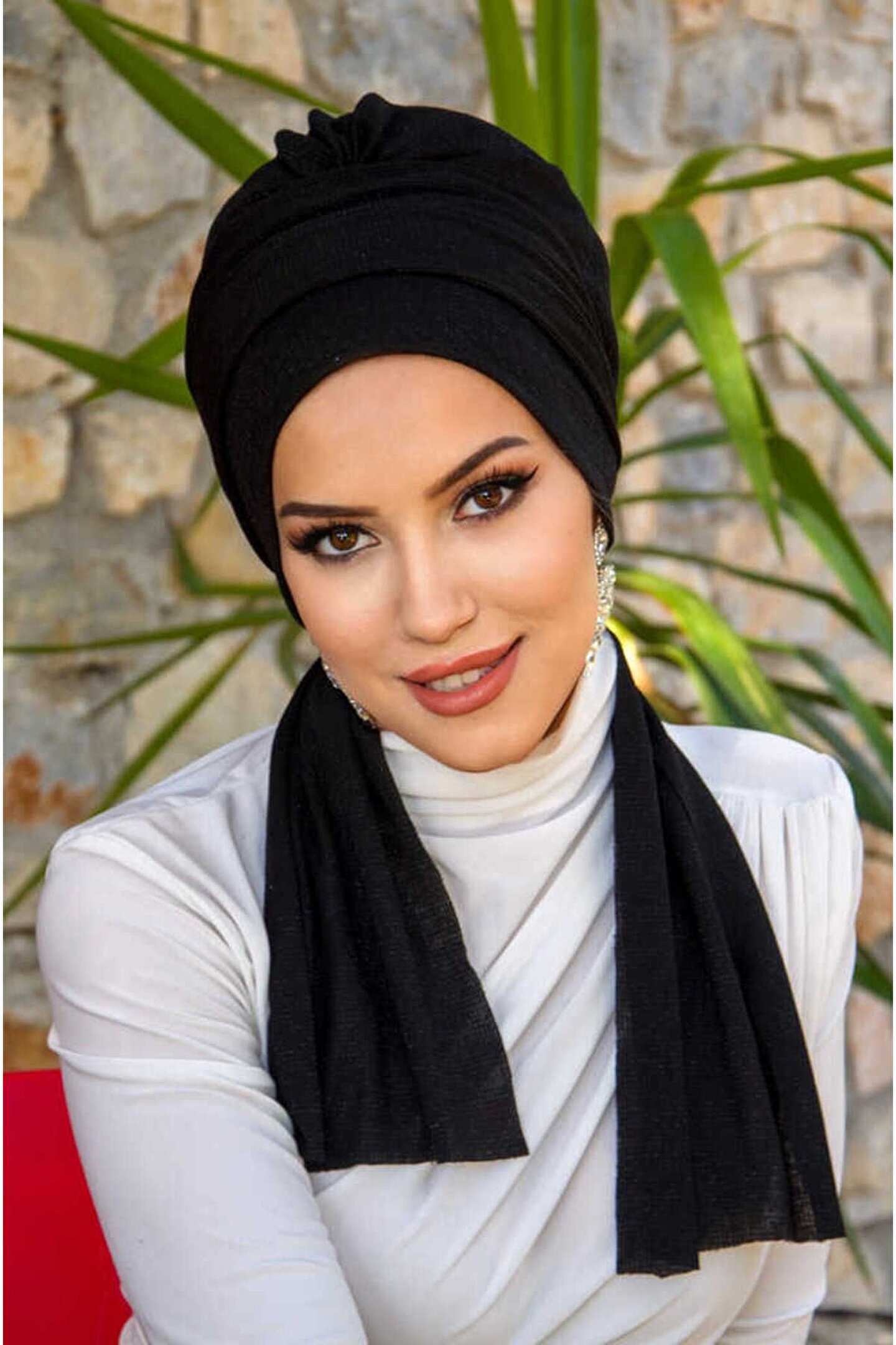 Siyah Gümüş Işıltı Burgu Detaylı Bone