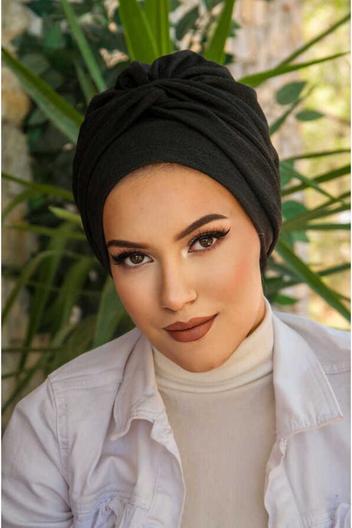 Siyah Haki Desenli Büzgülü Salaş Bone