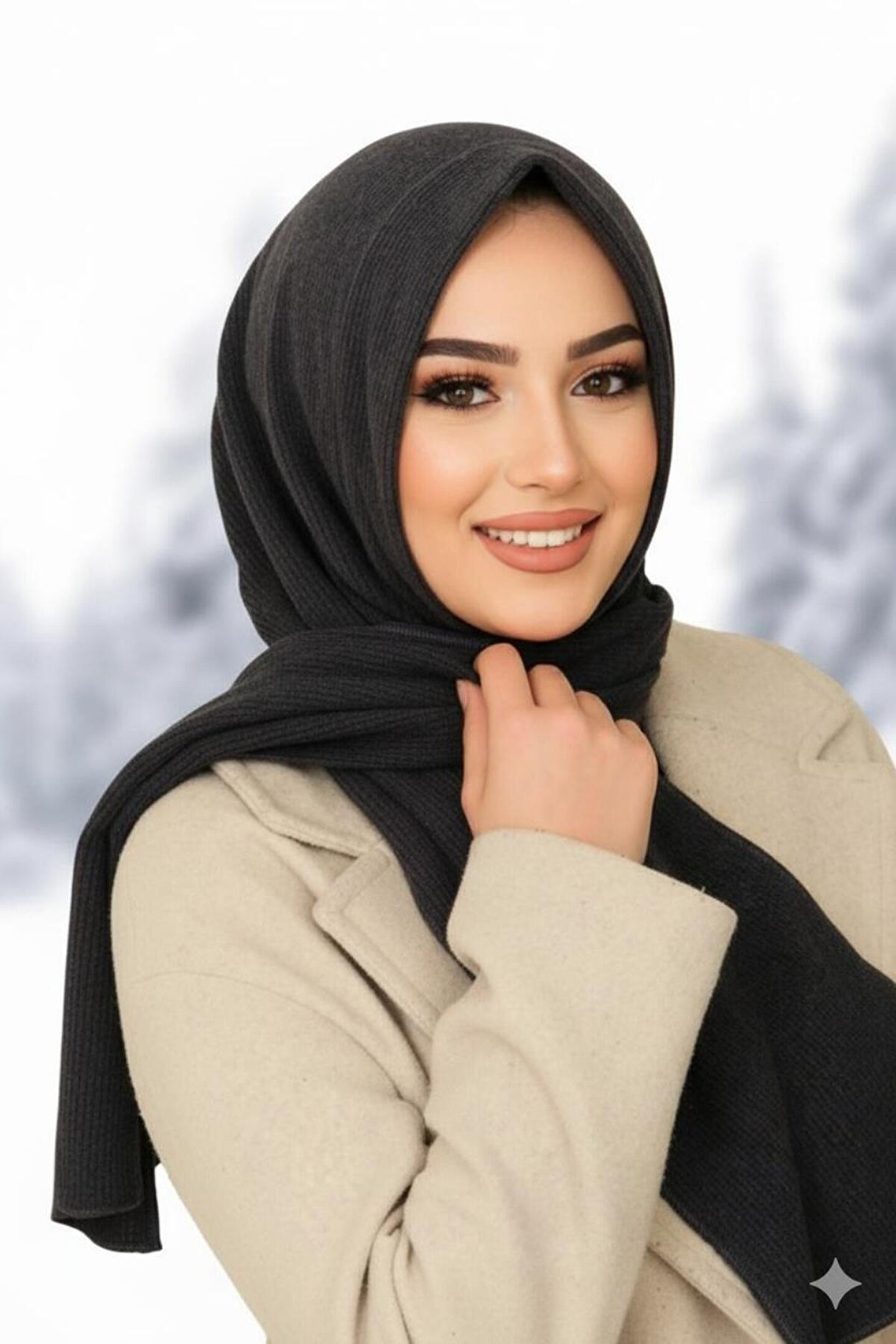 Aişe tesettür Siyah Kapüşonlu Çıtçıtlı Şal