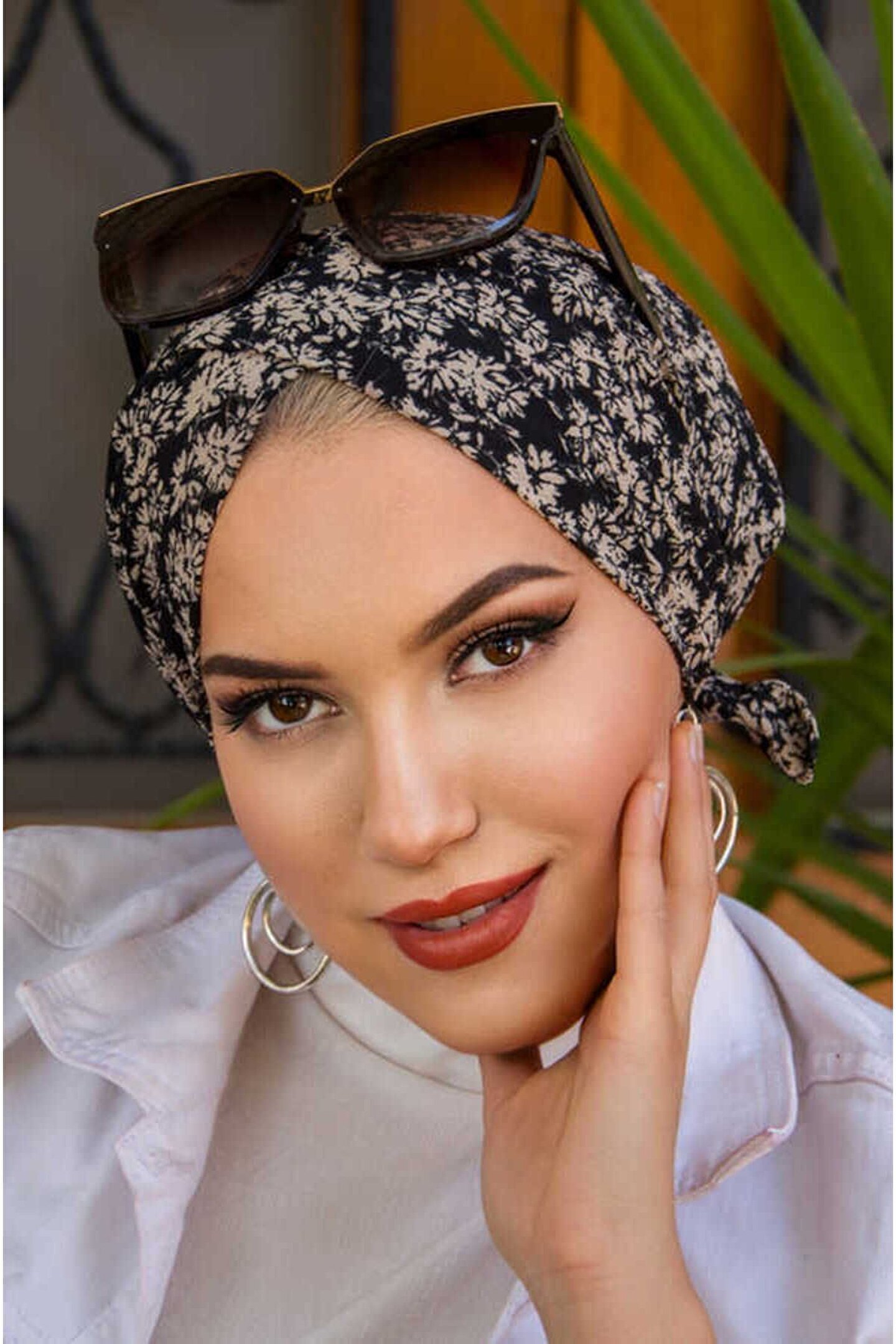 Uçuk Sarı Kahve Çiçek Desen Hazır Şal