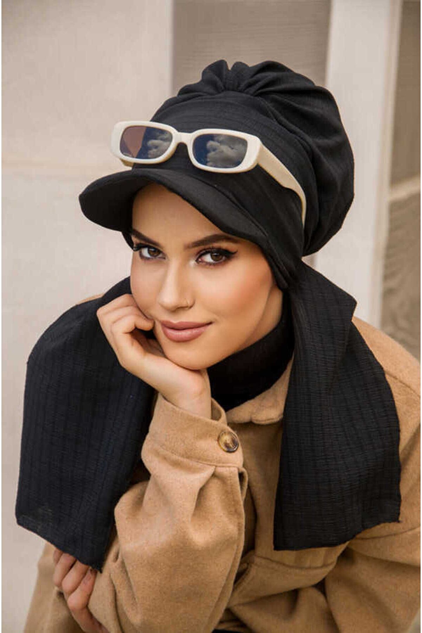 Zümrüt Kışlık Büzgülü Tesettür Şapka Ve Etol Takım