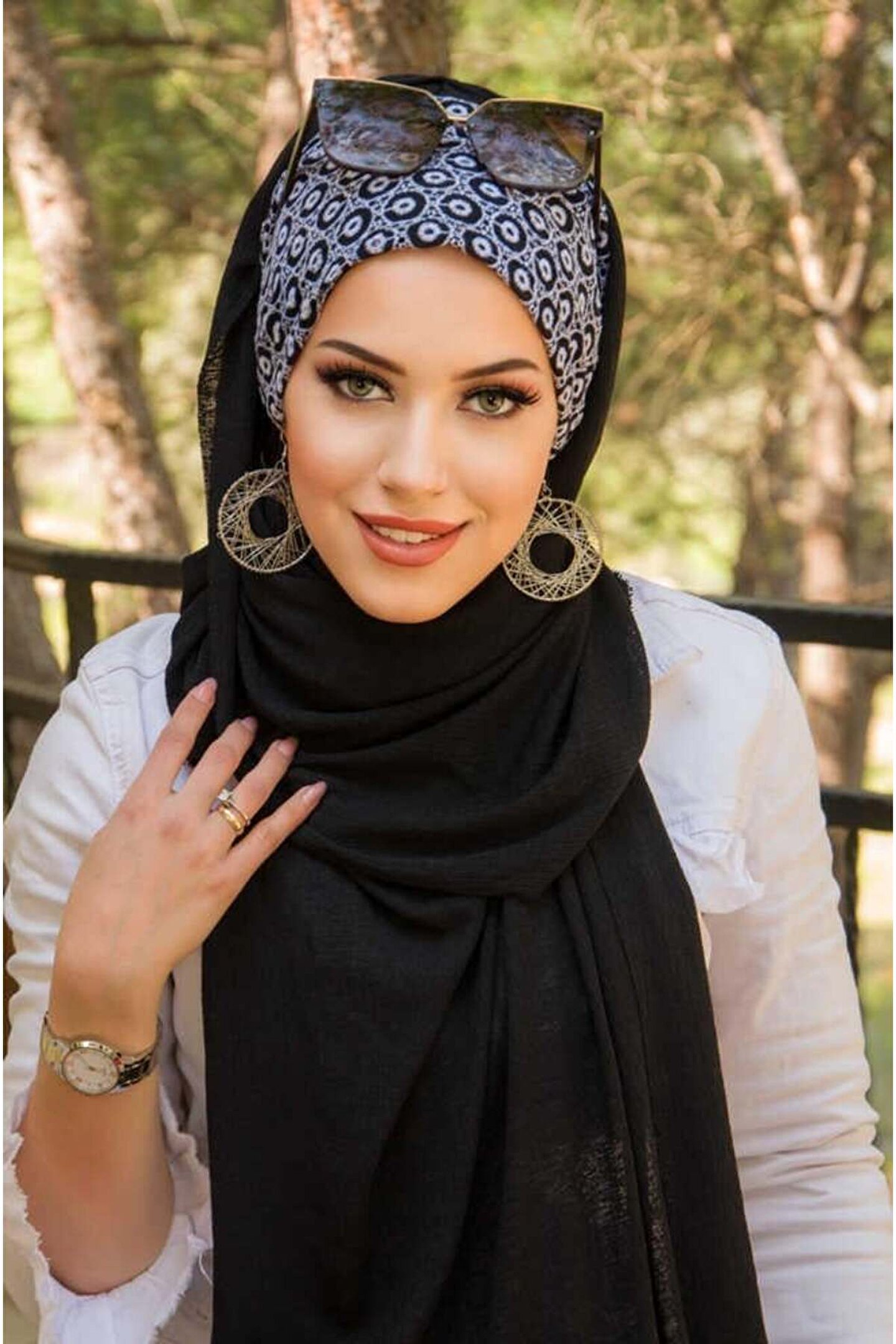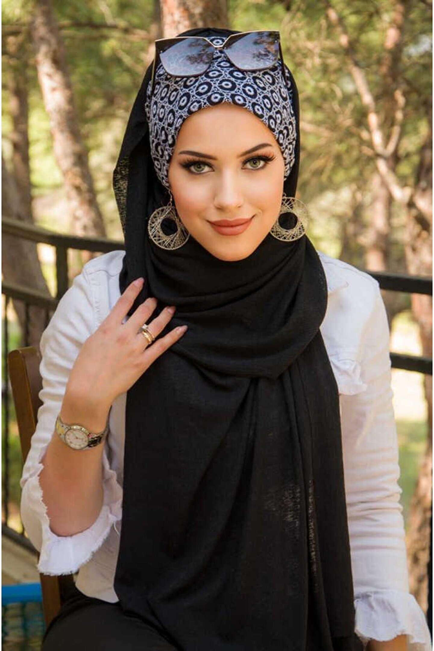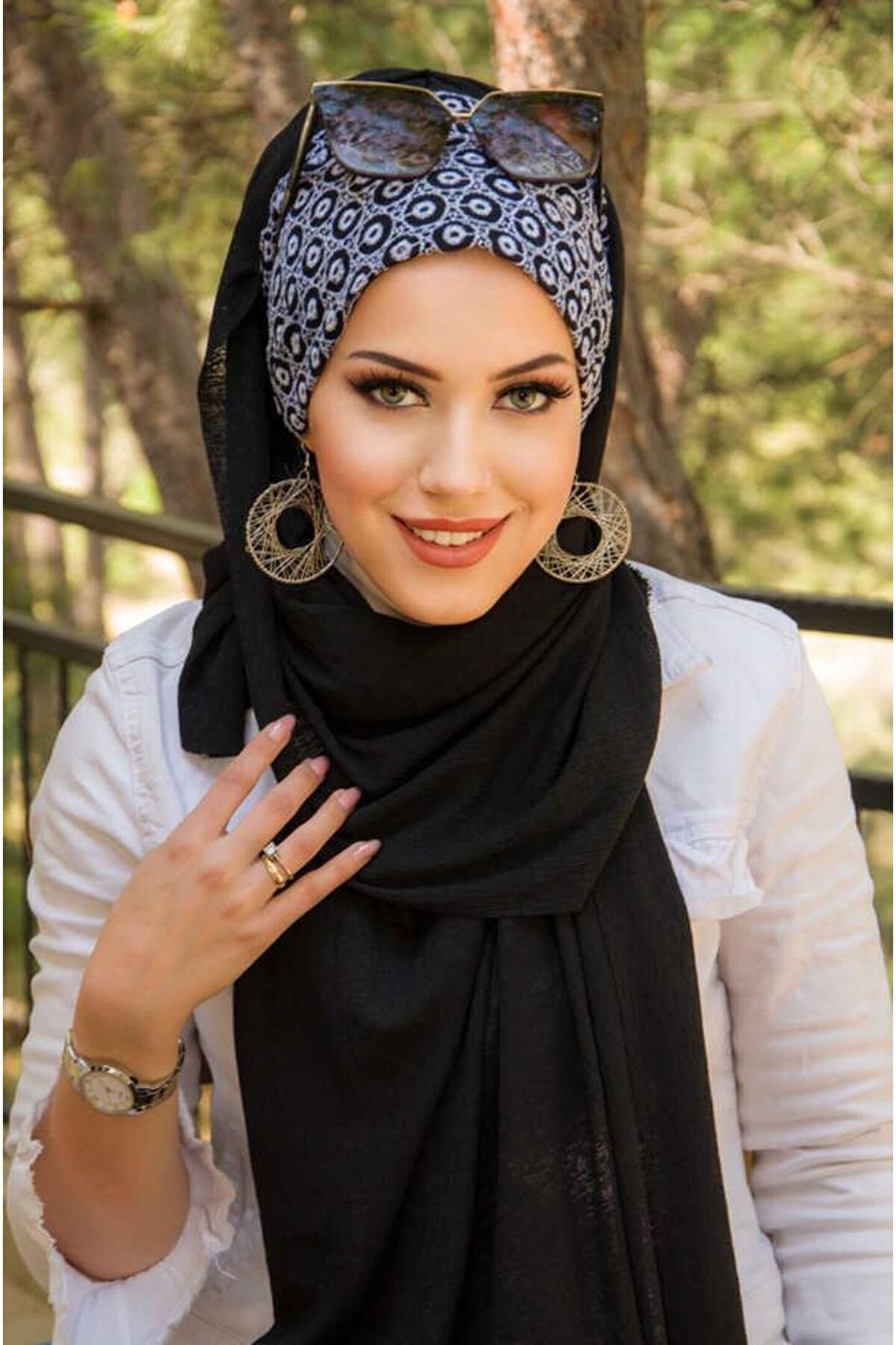 Aişe tesettür Siyah Puan Dantel Bone Hazır Şal