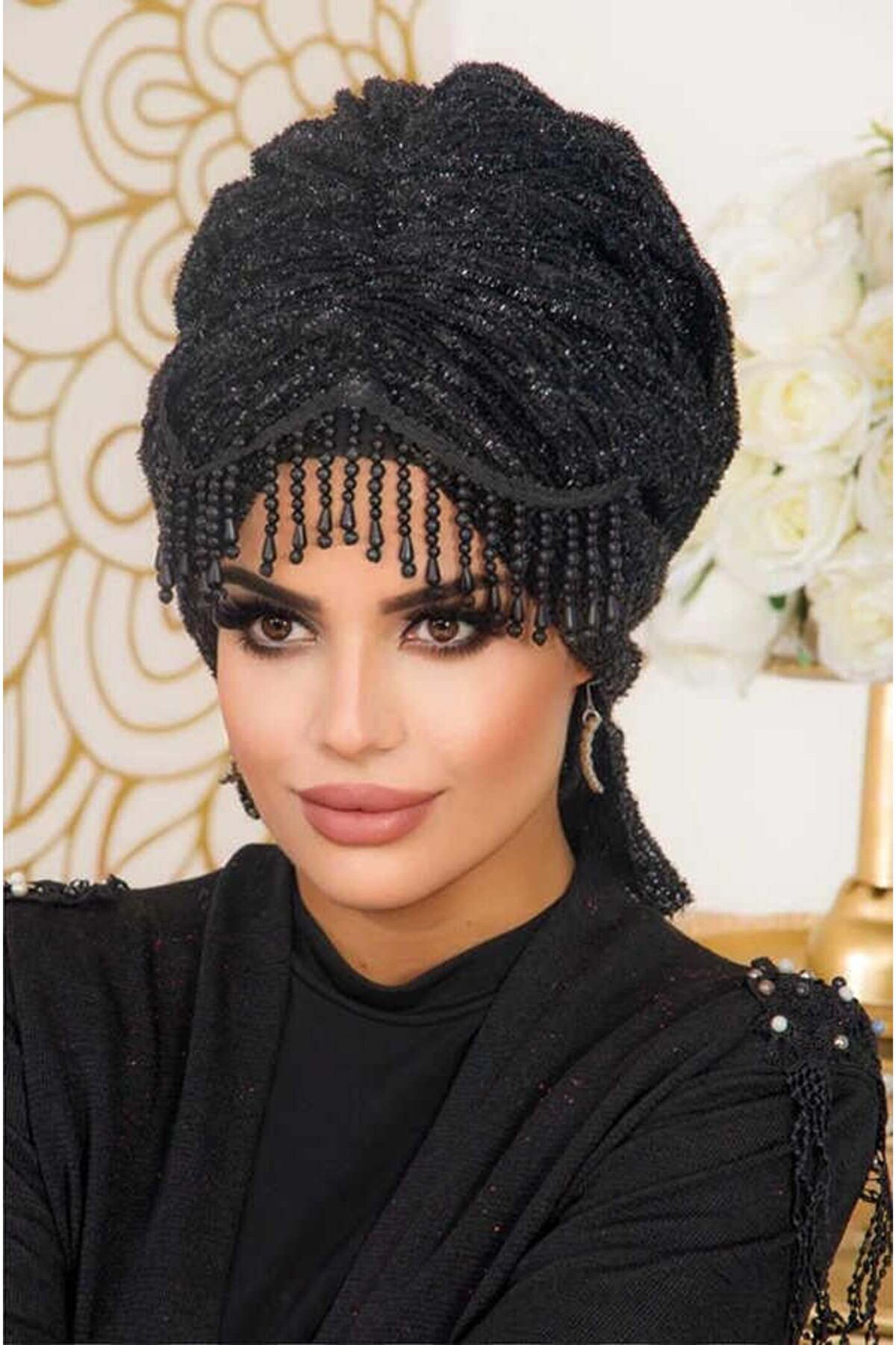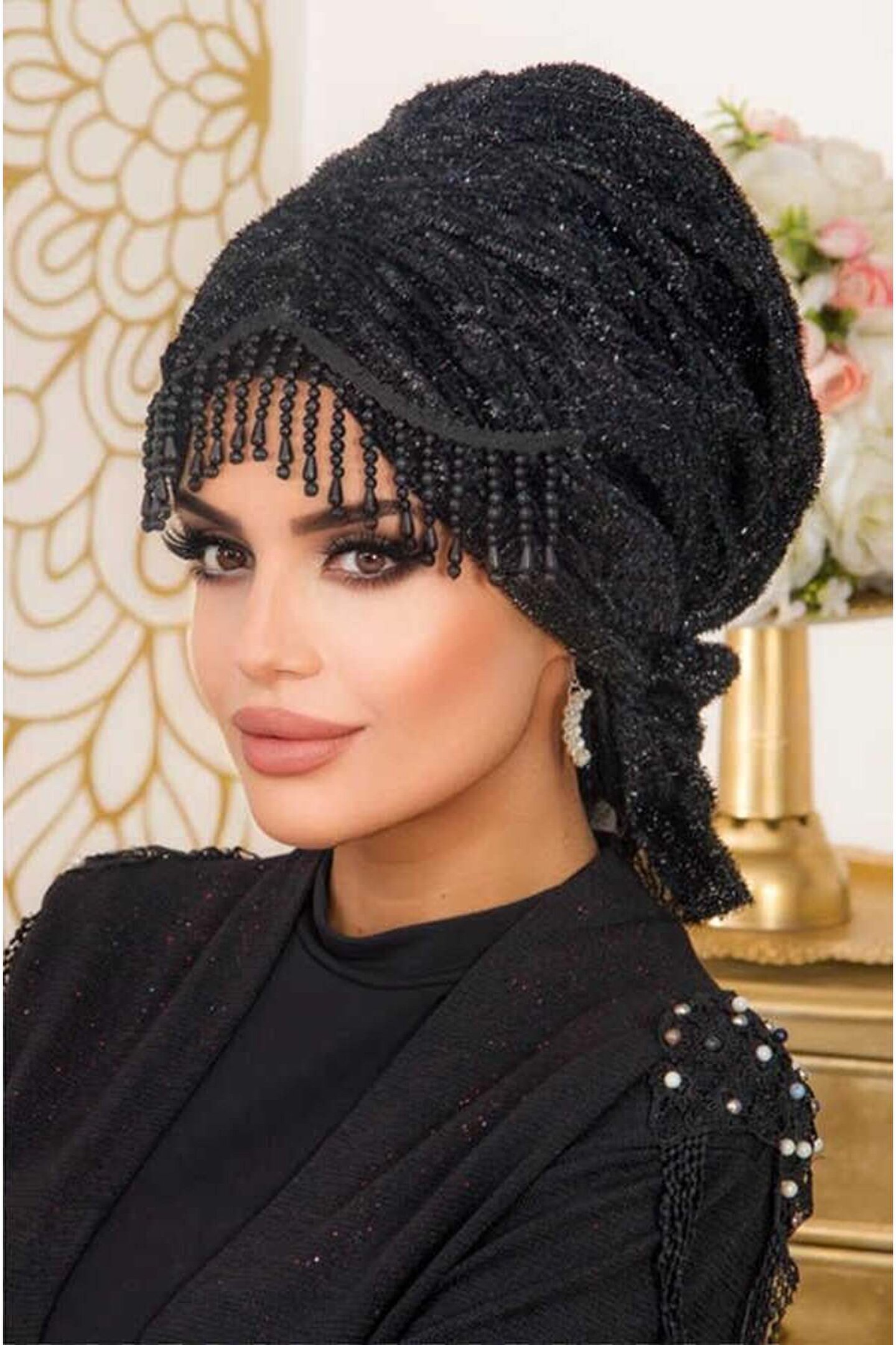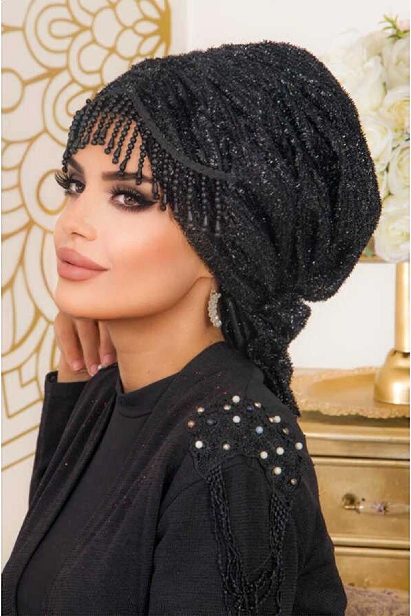- Tesettür giyim koleksiyonuna özel tasarlanmış, şıklığı ve zarafeti ön planda tutan siyah simli abiye bone; - Örme kumaş yapısı ile konforlu bir kullanım sunar ve gün boyu rahatlık sağlar; - Kolay bakım imkanı sunan yıkama talimatları sayesinde uzun süreli kullanım için idealdir; - %100 polyester materyal bileşeni ile dayanıklılık ve kaliteyi bir arada sunar; - Şık ve gece ortamları için mükemmel bir aksesuar olarak dikkat çeker; özel günlerdeki stilinizi tamamlar; - Her yaş grubuna hitap eden tasarımıyla geniş bir kullanıcı yelpazesine sahiptir;