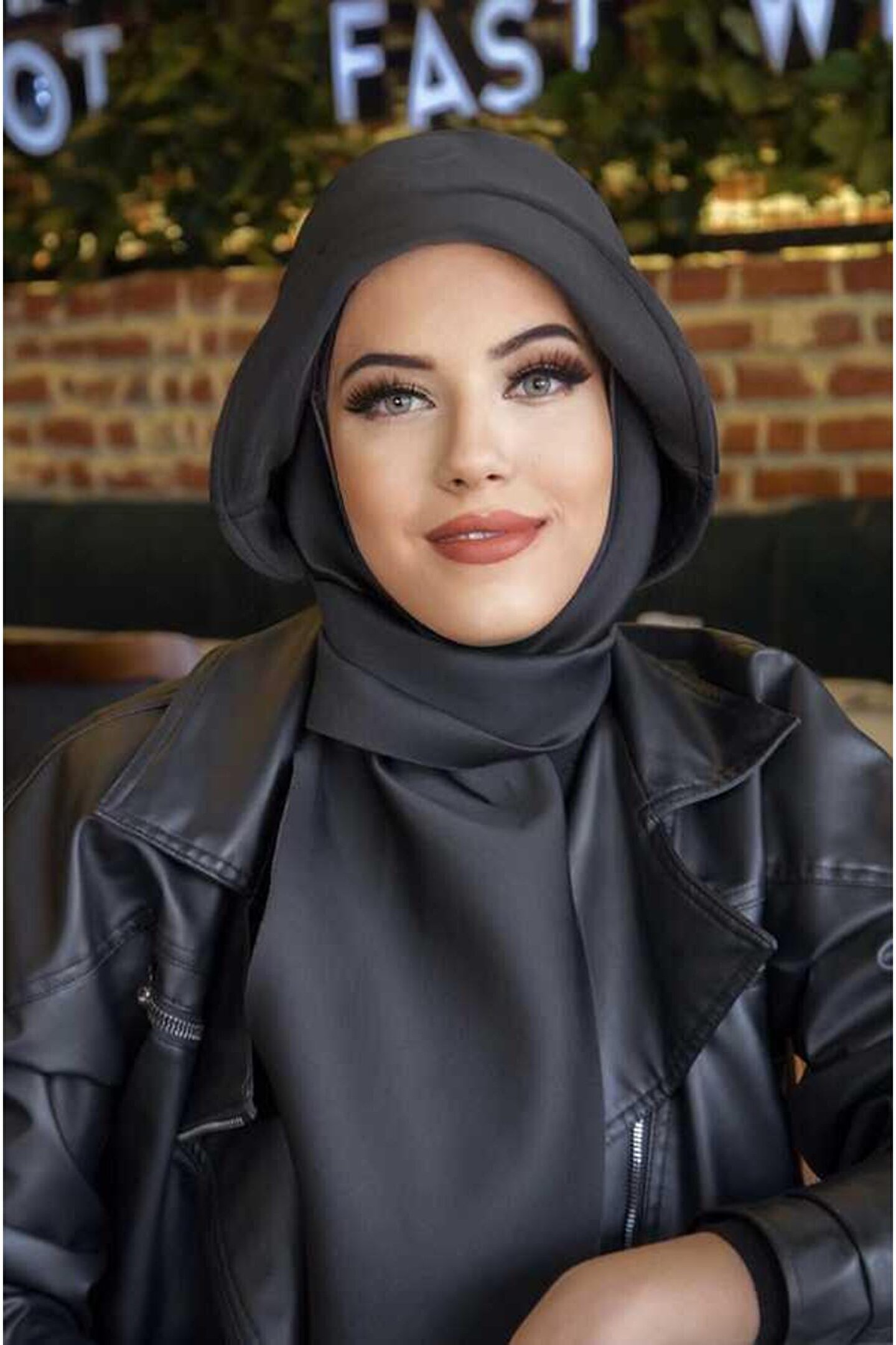 Aişe tesettür Siyah Scuba Atkılı Vintage Şapka