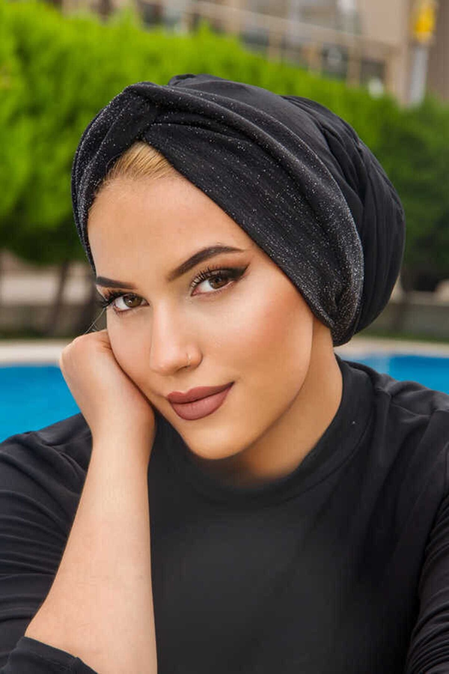 Siyah Simli Kelebek Model Burgu Abiye Bone Şal