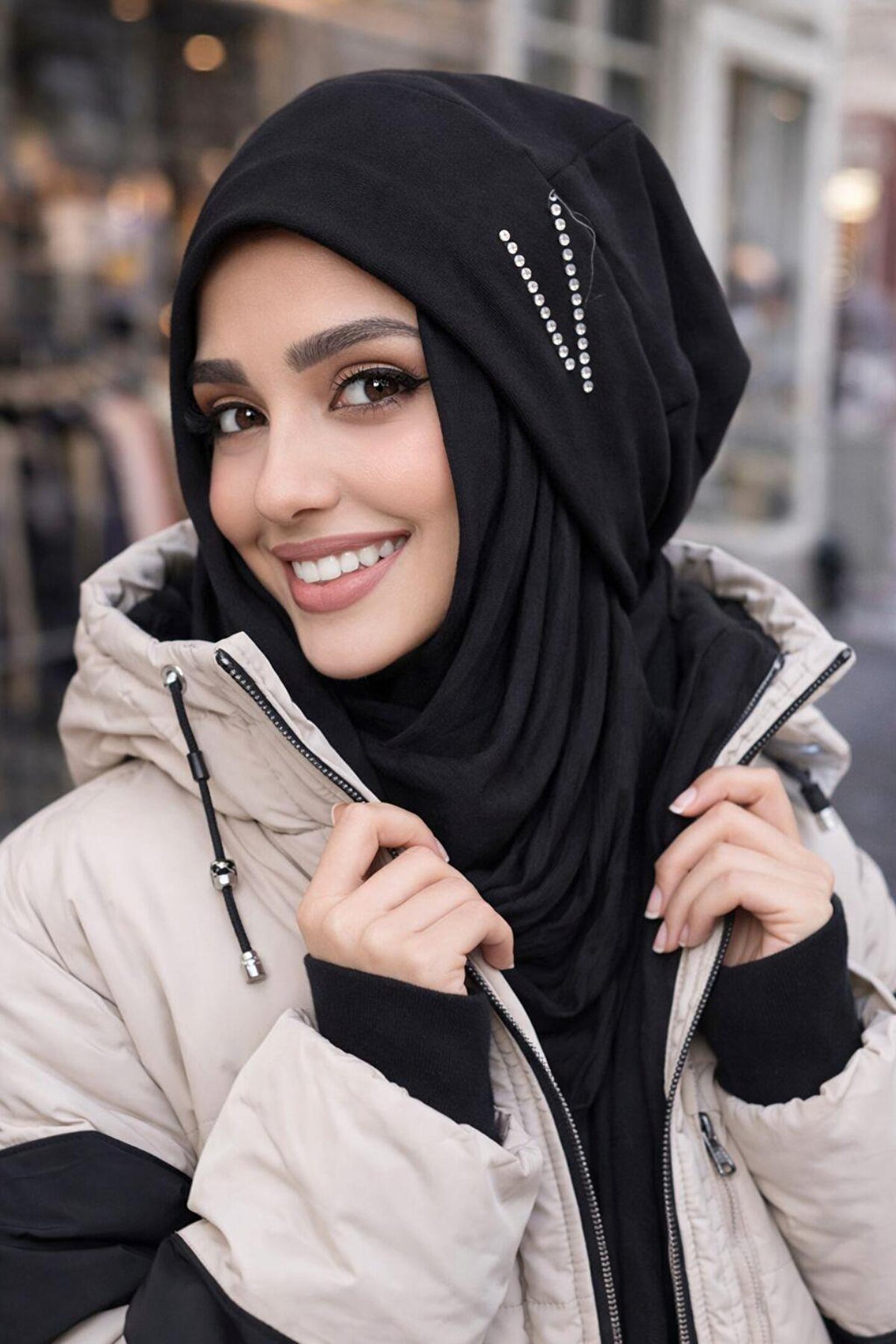 Aişe tesettür Siyah Taşlı Tesettür Bere