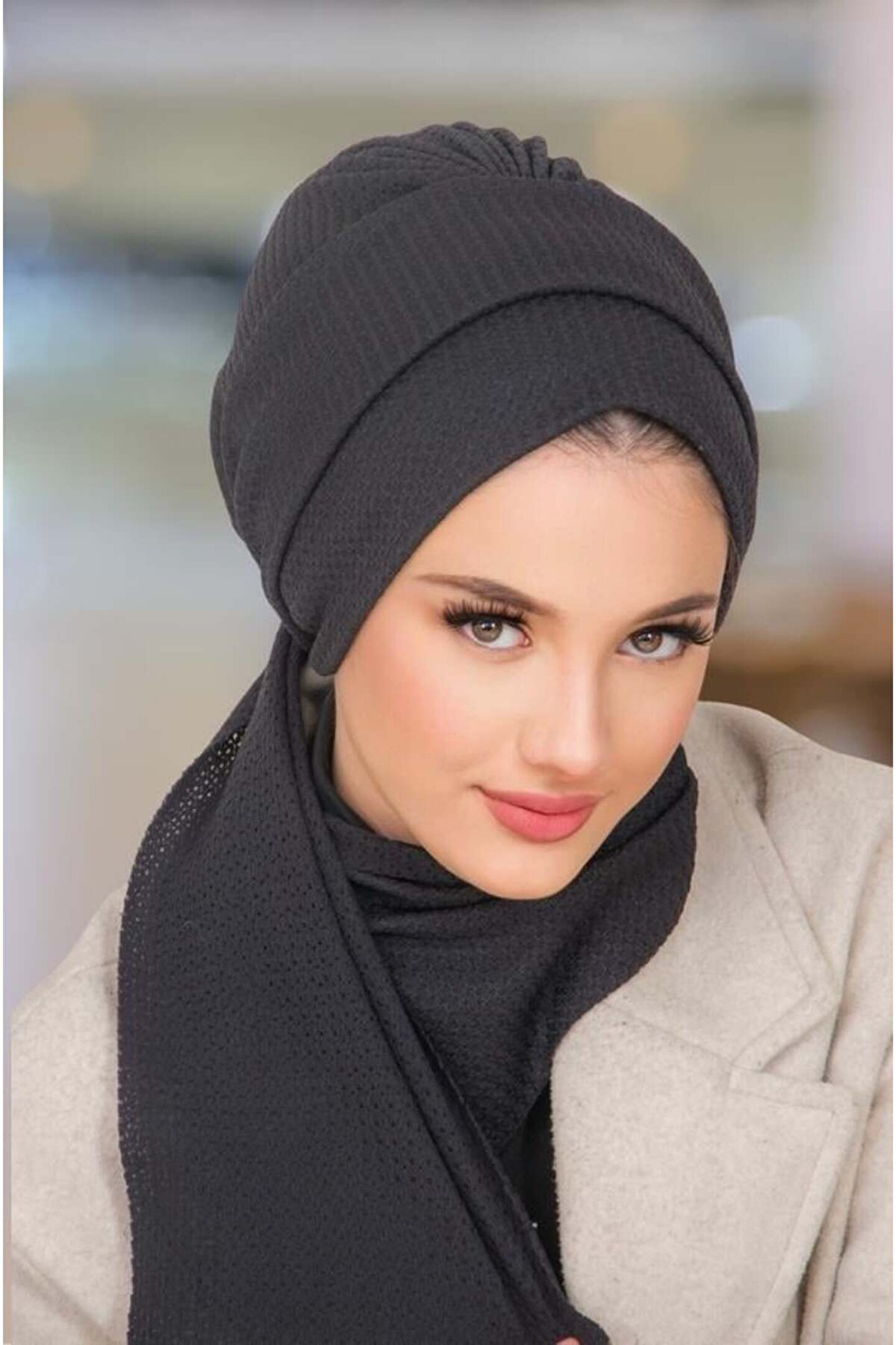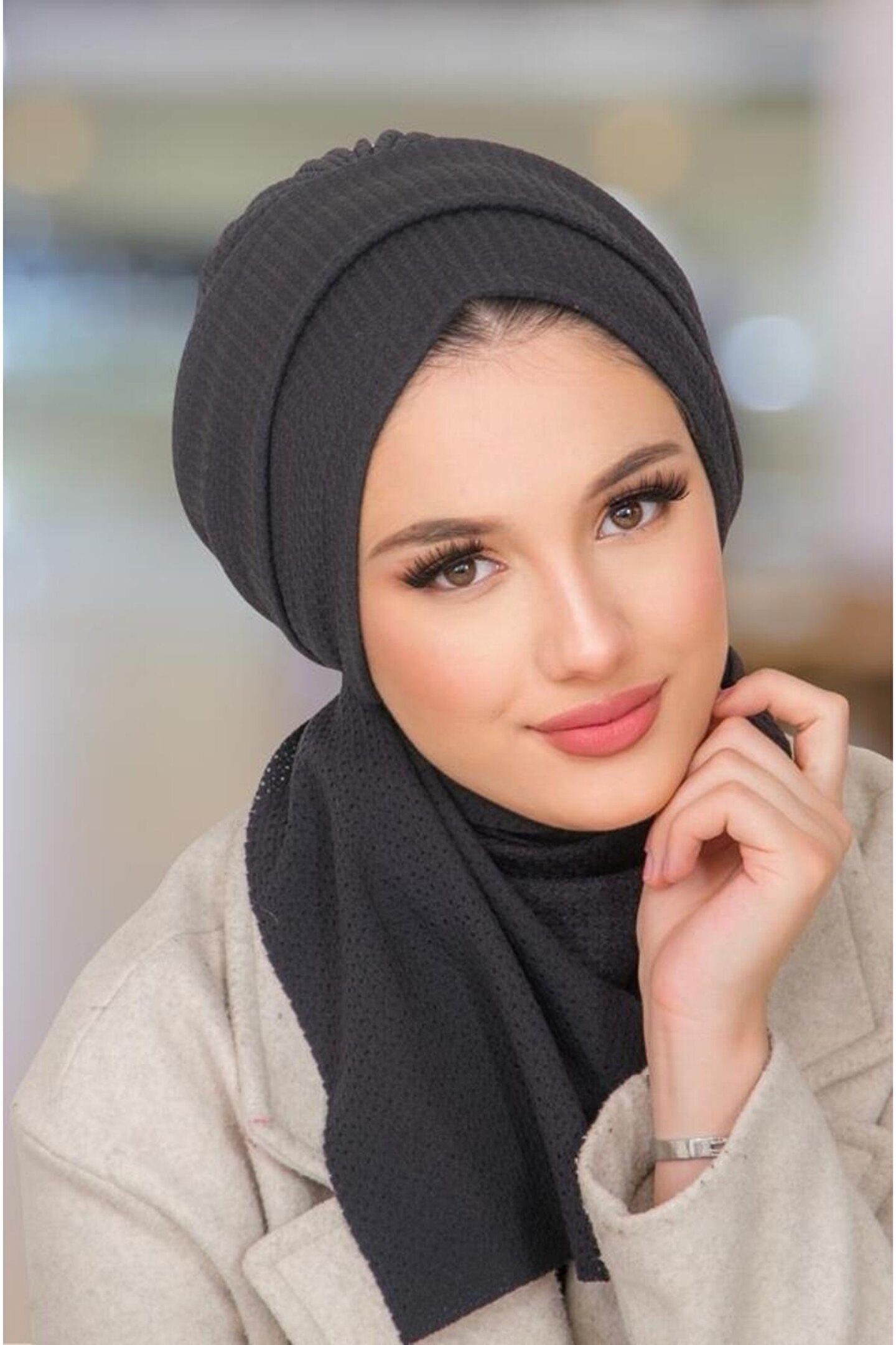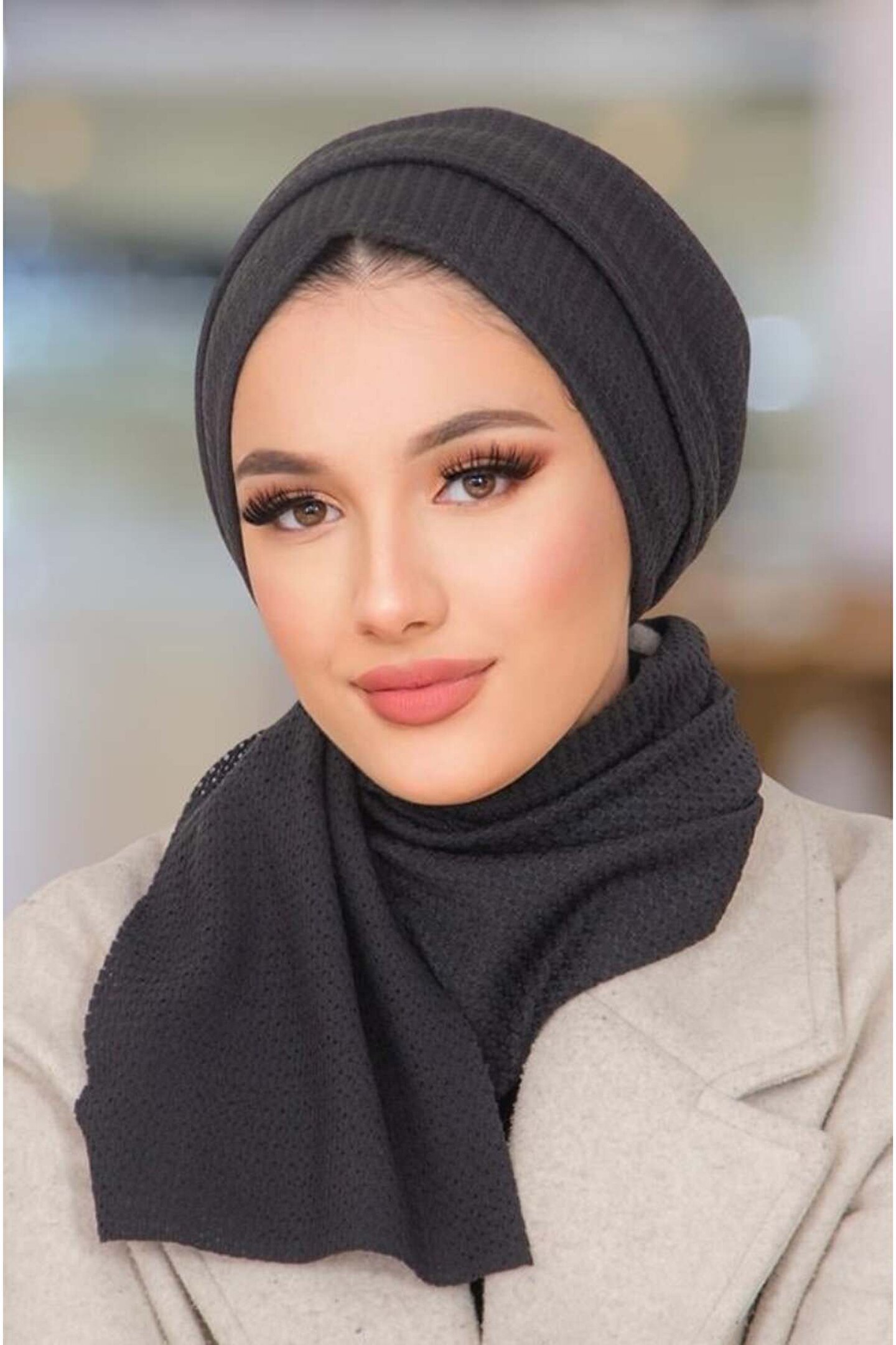 Aişe tesettür Siyah Triko Atkılı Tesettür Bone